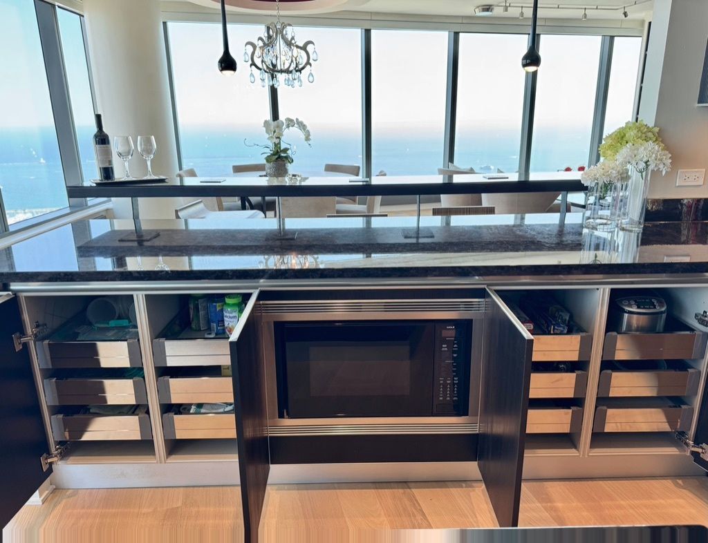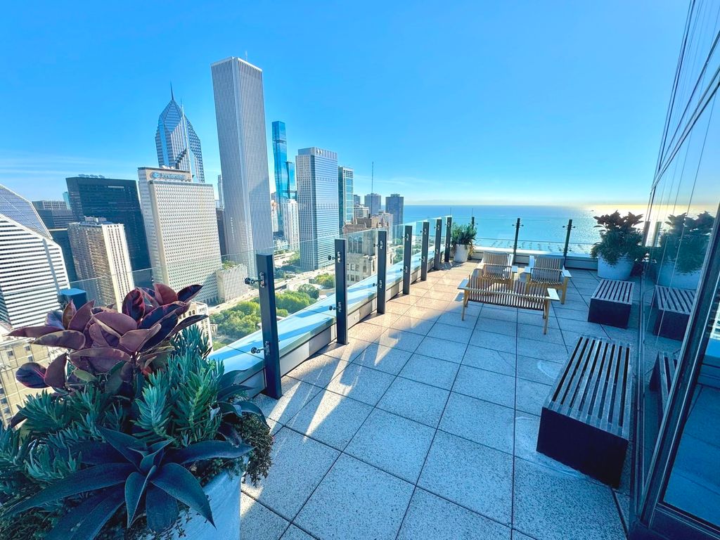 Legacy at Millennium Park is an iconic skyscraper designed by SCB. There are only 15 of these most sought-after Millennium 01 northeast corner units. Unit 5601 offers stunning waterfront views with ideal vantage points for taking in Chicago's iconic skyline, Monroe Harbor and Buckingham Fountain. From the moment you walk into the Foyer, you are enchanted by the views led on by the 60ft wrap-around window. The owner exquisitely custom-designed this home in the sky, with over $280K in upgrades. The living room features a custom-built wall unit with LED lights. Complemented by a circular cove ceiling with LED lights for the dining area, it is a great place for Navy Pier's fireworks nights. Continued to be wowed by this sumptuous kitchen, that look as chic as a model home, the style speaks volumes to those who appreciate architectural elements. It features luxury Italian Snaidero cabinetry (showcased at the Merchandise Mart) with stainless steel pulls, paired with quartz countertops that exude the subtle strength of monochromatic colors. The kitchen is equipped with a Wolf stainless steel cooktop/built-in oven, hood vent-out, a Sub-Zero fridge, a Miele dishwasher, a Wolf built-in microwave, and a warming drawer. The custom-built cantilevered island bar is perfect for entertaining, and a bar features a wine fridge. The recessed balcony is an ideal spot to watch the sunset. Sparing no expense, recent renovation added stunning Liston Milano imported wide-plank hardwood with natural stains. Lutron power shades throughout. Home Audio systems and surround sound in every room. Newly painted. The primary en-suite is spacious with lake/skyline views, it features a den space with a custom-built-in wall unit desk/vanity, a large walk-in closet with custom-built-in drawers and wardrobes. The primary bathroom is an oasis, featuring a double vanity, modern wall sconces, a large shower with a beautiful feature wall, and a 6-foot air-jet soaking tub, all set against white marble tiles, a separate water closet area with warming towel bars. The large mud room offers ample storage, equipped with washers and dryers. All Closet-Works built-ins. Exceptional location surrounded by the University Club of Chicago, Chicago Athletic Association Hotel, Palmer House, Art Institute, Theater District, and Chicago Symphony Orchestra offers a world-class living experience, allowing you to walk to the West Loop, Magnificent Mile, tennis, pickleball, two ice skating rinks, and an endless bike path along the lakefront! Accessible to pedways. Excellent condo management team and 24-hour doorman service, a health club featuring a fitness room, a 2-lane heated pool, a large whirlpool, and steam rooms. In-house valet/dry cleaning services, a package room, plus an in house out-door dog-walk area. Moreover, this premier "A" building features a sky bridge connecting to the elite University Club of Chicago, a private club offering world-class hotel services, fine dining, room service, and comprehensive sports/spa amenities. There are golf simulators and five squash courts (opt membership). 2 superb parking spaces are available for purchase, 4th floor next to the elevator.