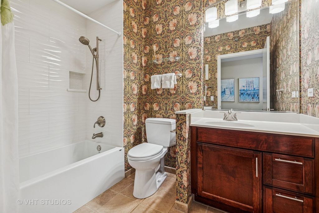 Live a fabulous lifestyle at the Fordham, a full service building in The Cathedral District right off the Mag Mile. Unit 2402 is a bright corner unit with 2 bedrooms, 2 bathrooms, a private terrace, north city views, and west sunsets. The unit has large bay windows, beautiful hardwood floors, a gas fireplace, and an updated kitchen. The kitchen was redone in 2018 with new countertops, backsplash, cabinets, a new double oven, and a spacious pantry closet. The primary bedroom has hardwood floors, 3 generously sized built out closets, plus an additional den space with expansive built-ins, perfect for the person who works at home. The space can easily be transformed into a large closet, nursery, or whatever fits your lifestyle best. The en-suite primary bathroom features a spacious new shower that replaced the original tub, allowing for an extra large shower. You will also enjoy plenty of storage, including a double bowl vanity, large linen closet and medicine cabinets. The second bedroom can fit a queen size bed, has a built-in bookcase, and makes the perfect den or guest room. The second bathroom has a new tub / shower combo. There is a true laundry room with a full size side-by-side washer and dryer (which is rare in the city). Lifestyle amenities include indoor pool, sundeck, fitness center, spa, massage room, sauna, hospitality center, private movie theatre, wine storage, humidor, smoking room, bike room, onsite manager, doorman, and dry cleaner. Enjoy shopping on the Mag Mile, trips to the nearby beach, and eating at some of the city's best restaurants, all just within blocks. Located across the street is a wonderful new Whole Foods and Lifestyle gym. Easy access to public transportation and the highway. Parking space P-941 and storage locker #643 included in the price.