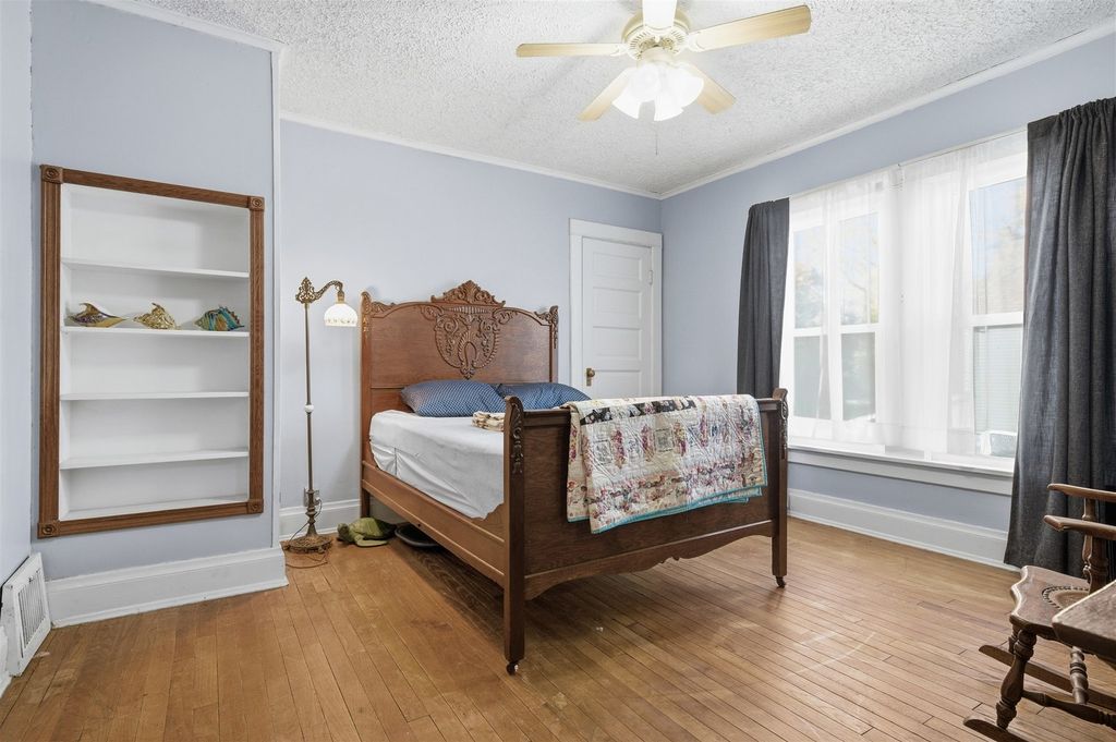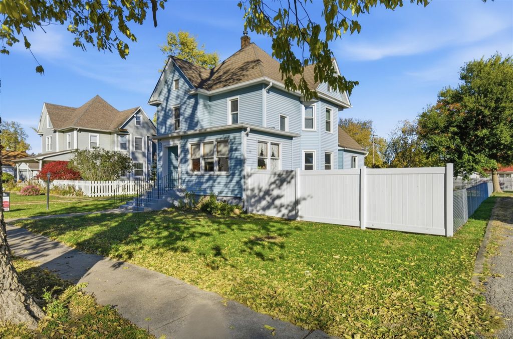 Welcome to this charming 4-bedroom, 2-bath home full of character and warmth! From the moment you step inside, you'll appreciate the beautiful woodwork, built-ins, and large windows that fill the home with natural light. The enclosed front porch is a great spot to enjoy your morning coffee or read a book. Outside, enjoy the convenience of a 2.5-car garage plus a large, insulated and heated shop-perfect for hobbies, storage, or projects year-round. Some recent updates include - new hardwood floors throughout 1st floor, on-demand water heater, stackable washer/dryer with an option for laundry in the basement as well, breaker box updated, newer furnace, chain link fence and metal roof 2015. If you are looking for a charming home with plenty of space and storage, come take a look at this one!