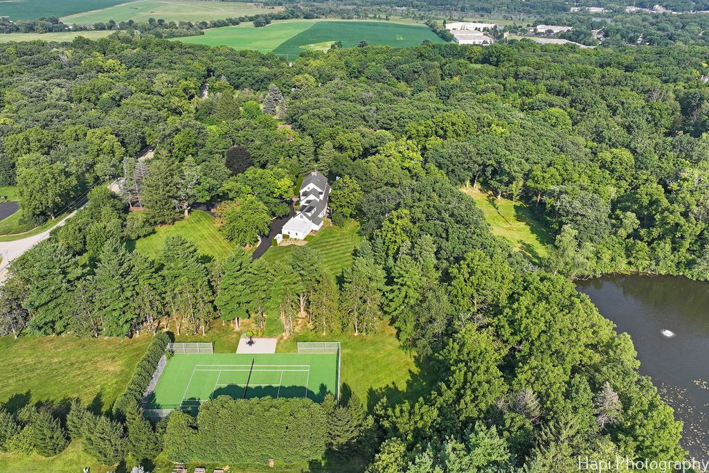 Warm and inviting, this iconic Spring Acres Hills estate is steeped in the history of Dundee. Now offered for the first time on the last remaining 8.42 acres of the original farm. Beautifully maintained and surrounded by mature trees, manicured lawns, and a spring-fed stream, this estate feels like living in a private park. The main residence exudes timeless elegance, offering six spacious en-suite bedrooms, including a first-floor primary suite and a unique multi-generational suite with its own kitchenette and living area. Historic charm abounds, most notably in the paneled library featuring hand-carved pine-meticulously relocated from the original home and rich with generational history. The interior is graced with stunning hardwood floors, intricate crown molding, and numerous built-ins, adding to the home's character and allure. Enjoy the tranquility of the sunroom and screened porch, where you can unwind and take in the natural beauty that surrounds you. Multiple entertainment spaces include a theater room, game and billiard rooms, a large rec area, and an expansive family dining room that opens to a beautiful stone terrace-perfect for al fresco dining and celebrations of any size. The updated catering kitchen makes hosting effortless. Recreational amenities are second to none: a year-round indoor swimming pool with bath and changing room, a private tennis court. The barn has been thoughtfully repurposed into a guest house plus an exercise room, complete with two bedrooms, a kitchen, a bath, and a sauna. Nature lovers will be captivated by the breathtaking views of ancient oaks and maples that adorn the landscape. This fabulous home is perfect for creating cherished memories. Designed for both intimate gatherings and grand-scale entertaining, the home has graciously hosted everything from neighborhood dinners to corporate functions and even four weddings with up to 300 guests. This rare offering combines refined luxury, flexible living spaces, and a sense of legacy in a one-of-a-kind setting. Discover the unmatched serenity, charm, and function of this historical estate-truly a place to create lasting memories for generations to come.