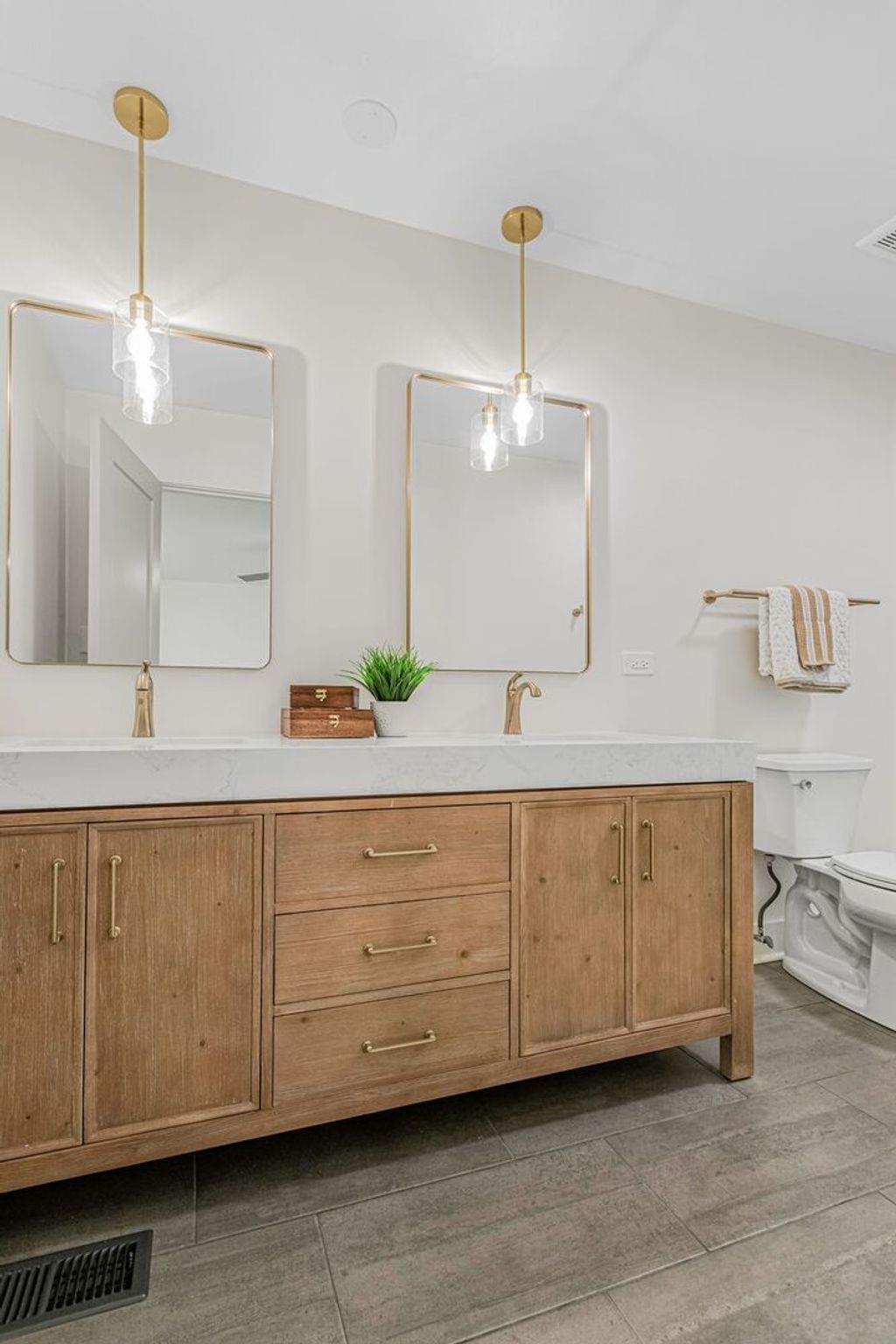Welcome to this beautifully remodeled home nestled in the highly desirable Windings neighborhood. Boasting 5 large bedrooms and 3.5 stylish bathrooms, this residence offers spacious living at its finest. The main living areas feature stunning hardwood flooring, with enormous open spaces perfect for family and entertaining. The family room showcases a gorgeous fireplace accent wall and walkout access to a massive, brand-new composite deck, ideal for outdoor gatherings. The chef's kitchen is a dream come true, with multiple islands, stainless steel appliances, quartz countertops, and high-end finishes throughout. Each bathroom is tastefully designed with beautiful tilework, adding a touch of elegance. The expansive bedrooms provide ample space for a large family, while the large basement includes a built-in dry bar and eye-catching tile accents, serving as a perfect focal point. Additional updates like new carpet, furnace, A/C, siding, and driveway make this home truly turnkey, ready for you to start creating lasting memories. The Windings of Ferson Creek provides access to a clubhouse, pool, tennis courts, parks, bike trails and more!