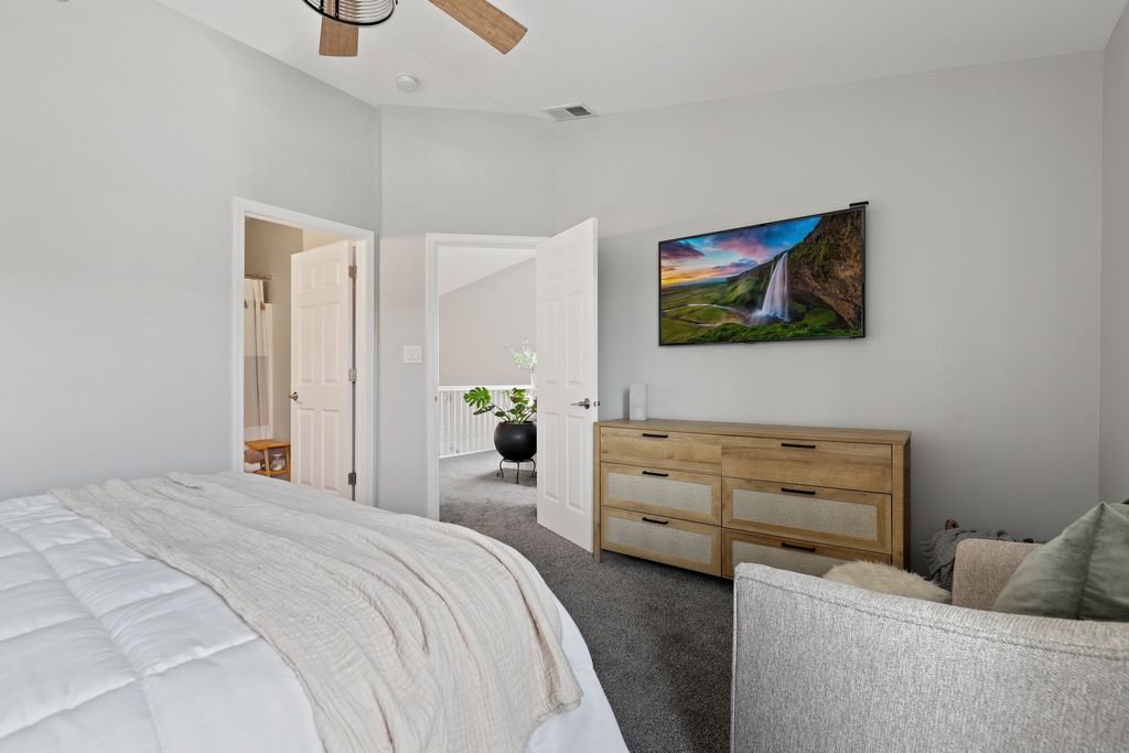 Welcome home to this beautifully updated split-level townhome! Step inside and enjoy new flooring throughout and a bright, open-concept main floor that's perfect for both relaxing and entertaining. The spacious family room features a modern fireplace with stylish finishes, flowing seamlessly into the eat-in kitchen, complete with granite countertops, stainless steel appliances, ample cabinet space, and a charming breakfast bar. Upstairs, you'll find two generously sized bedrooms, including a primary suite with a walk-in closet, plus a fantastic den area-perfect for a home office, reading nook, or lounge space. The lower level offers a versatile family room, an additional private bedroom, and a full bathroom-ideal for guests or extra living space.