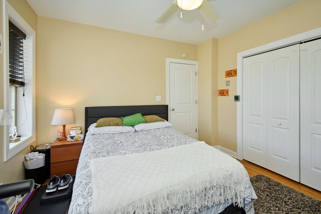 Spacious 3 bedroom, 2 bathroom condo with modern updates, washer/dryer in-unit and a private deck! Truly wonderful unit featuring an open layout, high ceilings, tall windows, newer doors and trims, all completed with hardwood floors throughout. Spacious living room and dining combo with a decorative fireplace adds charm and warmth. The kitchen is generously sized, offering granite countertops, a private peninsula, and stainless steel appliances including a double oven and wine cooler. Extra Large Pantry. The master bedroom includes a walk-in closet and a private bath with stand up shower for your comfort and privacy. Additional conveniences include in-unit laundry and spacious closets in each bedroom. Joliet Balcony facing the residential neighborhood offers even more charm. Extra Large storage space on the main floor and plenty of street parking, permit parking on tis particular street. This move-in ready condo is located in a super convenient area-close to major roads, bus lines, and shopping. Assessments include both hot and cold water. Don't miss out on this perfect blend of comfort, style, and location!