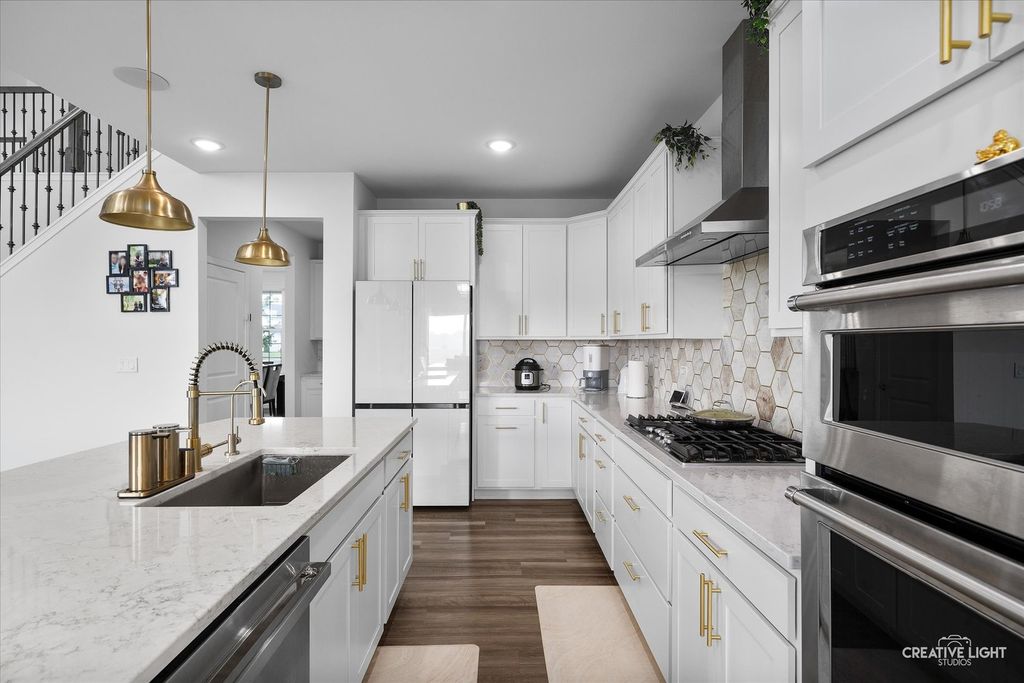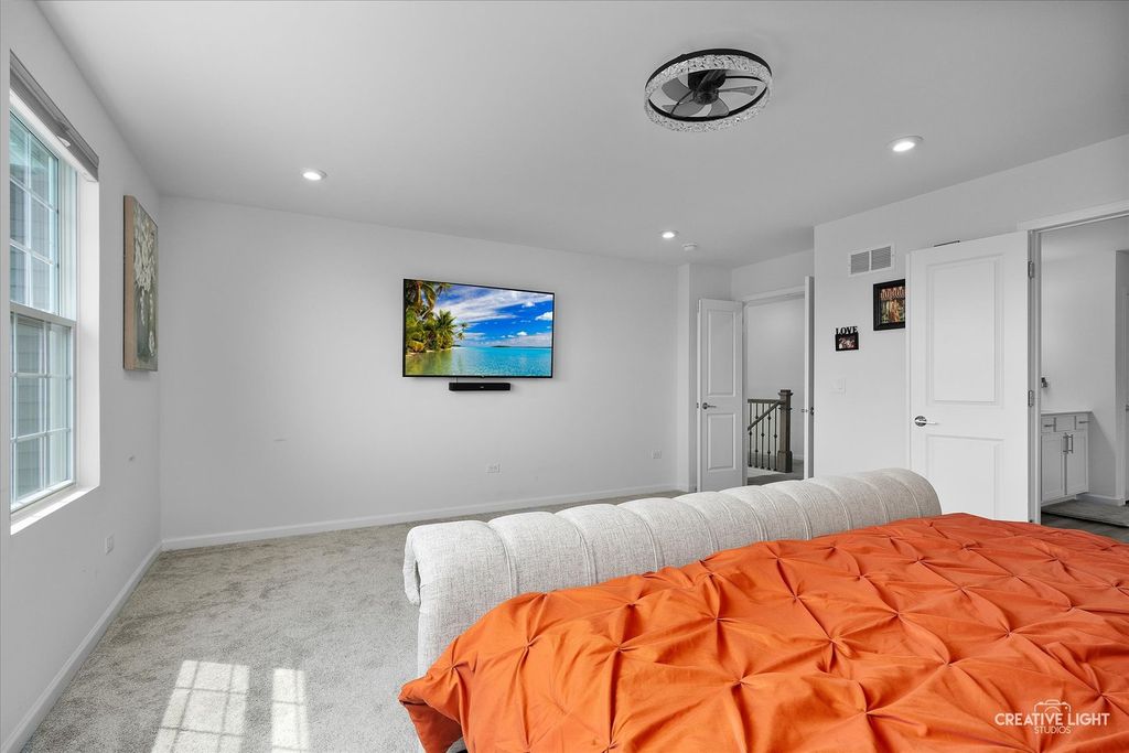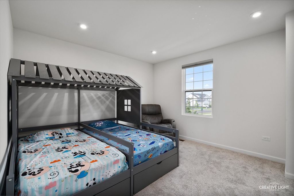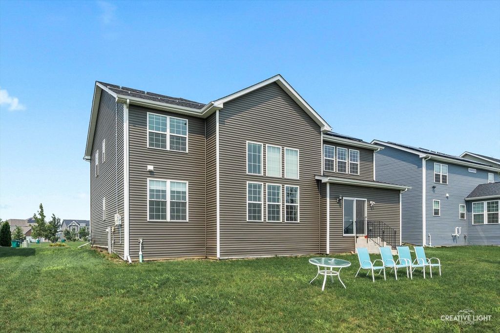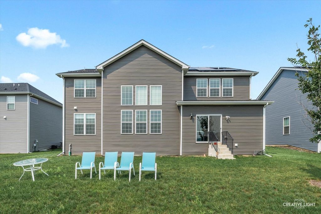 Stunning 5-Bedroom Home with Finished Basement, Solar Panels & Designer Upgrades This beautifully upgraded 5-bedroom, 2.5-bathroom home offers a perfect balance of luxury, comfort, and functionality-ideal for modern families, multi-generational living, or entertaining. The main level features a Bedroom or Office. Enjoy a dramatic two-story gathering room that opens to the gourmet kitchen, cafe, and the convenient Pulte Planning Center. The home also backs to an open area, providing peaceful views and enhanced privacy. Highlights & Premium Features Main Living Areas * 5 spacious bedrooms, including main-floor guest/Office Enhanced vinyl plank flooring throughout much of the first floor * Dramatic two-story family room with built-in Klipsch speakers * Motorized blinds (1st floor) and honeycomb blinds (2nd floor) Gourmet Kitchen * KitchenAid stainless steel appliance package * Samsung Bespoke 4-door refrigerator * Quartz countertops in kitchen and all bathrooms * Soft-close cabinets and pull-out trash drawer * 42" upper kitchen cabinets & deep 10" undermount sink Finished Basement * Large recreation room with ample storage * Dedicated home theater/media room * Rough-in plumbing for future basement bathroom * Organized storage room with built-in shelving * 9' basement ceilings for an open, airy feel * Installed radon mitigation fan Technology & Energy Efficiency * 22 fully paid solar panels (~10,000-11,000 kWh/year) * Culligan whole-home water softener * 75-gallon water heater * 240V EV charger in garage Laundry & Closets * Included Samsung washer & dryer * Custom closets in primary suite and first-floor bedroom Exterior Features * Epoxy-coated garage floor * Newly sealed asphalt driveway * Retractable mesh front storm door This home has it all-style, space, smart features, and sustainability-perfectly situated on a private lot with no rear neighbors. Move-in ready and meticulously maintained, this home is a rare find! Location: Minutes away from Route 59 which includes variety of store ranging from grocery, shopping, dining and more! Easy access to I-55 and Plainfield Downtown