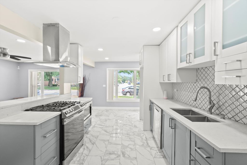 Welcome to this stunning brick home that blends modern style with comfort in all the right ways. As you walk in, you're greeted by warm hardwood floors that carry throughout the space, setting the tone for a well designed and functional layout. The main home features three generously sized bedrooms, offering the perfect balance of privacy and comfort. Just a few steps outside, the guest house provides two additional bedrooms, ideal for extended family, visitors, or creating a separate home office setup. The heart of the home is the spacious living room that flows effortlessly into a dedicated dining area and a sleek kitchen complete with smart stainless steel appliances. Adjacent to the kitchen, you'll find a cozy four seasons room anchored by a fireplace, perfect for relaxing or entertaining year-round. The bar area adds a stylish touch for hosting, with direct access to the backyard making indoor and outdoor living easy. Above the garage, you'll find a versatile loft space with its own private access, a great option for a comfortable in-law arrangement, a guest suite, or simply a quiet retreat away from the main home. Whether it's for family, friends, or personal use, it offers flexibility to fit your lifestyle. Tucked in a convenient location near I-94, 162nd Street, I-294, and Lincoln Highway, this home keeps you close to everything while giving you the space to enjoy it all. With thoughtful updates and unique features throughout, this one is ready for you to move in and make it your own.