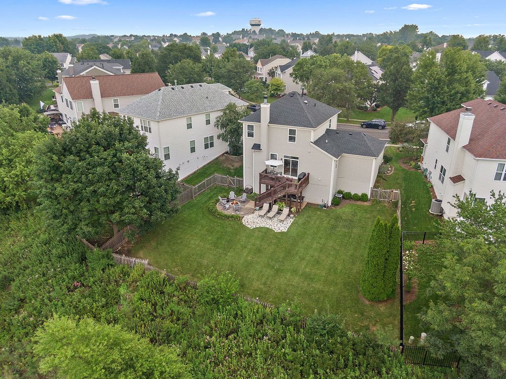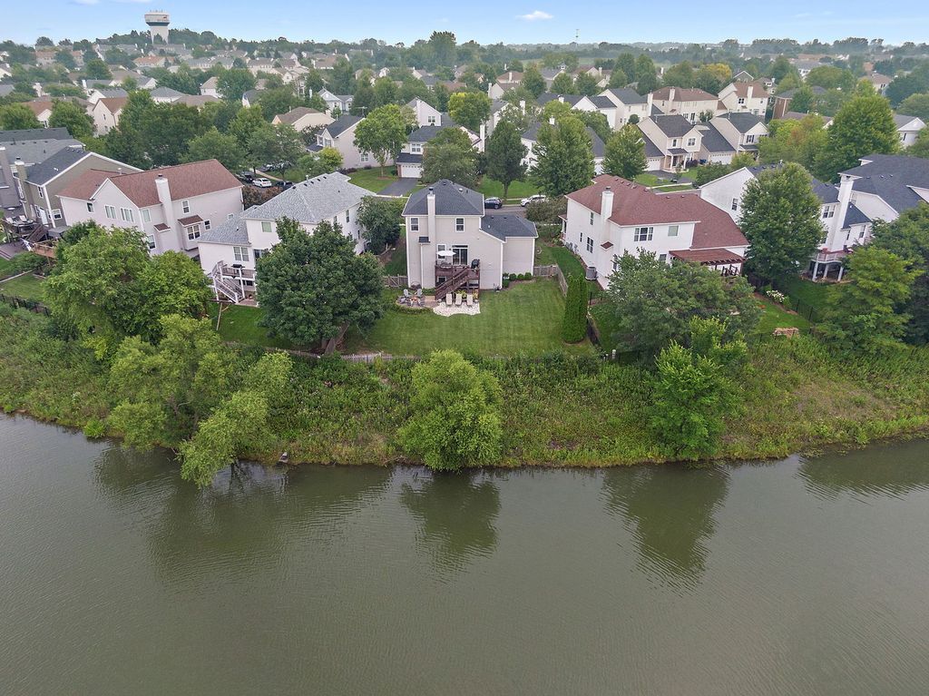 Move-in ready with stunning pond and sunset views! This beautifully updated home features a walkout basement to a fenced yard, lighted fountain, brick patio, fire pit, and outdoor sunset bar. Inside: fresh neutral paint, white trim, hardwood floors, new carpet, and updated lighting. The kitchen boasts brand new 42" soft-close cabinets, granite counters, stainless appliances with 5-burner stove, and abundant storage. The spacious master suite includes a walk-in closet; all bedrooms have ceiling fans. The walkout basement offers an office/4th bedroom, full bath, wet bar, and large storage areas. Extras: new roof, covered porch, new garage opener, and laundry room with cabinets. Enjoy neighborhood parks, tennis courts, trails, and walking distance to Otter Cove Water Park. Just 5 minutes to downtown St. Charles & Geneva in the sought-after St. Charles School District!