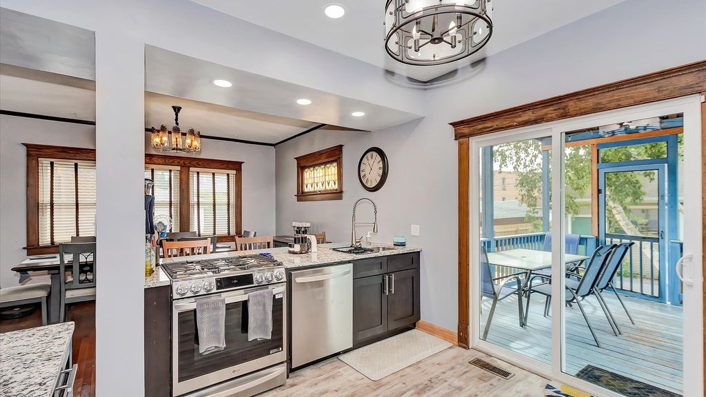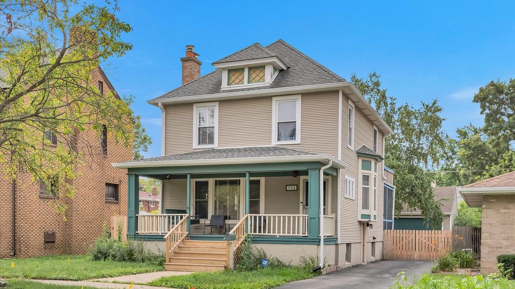 BEAUTIFUL Charming 2-Story home in the sought after Cathedral District of Joliet. Walk up the brand new stairs to an open porch with a porch swing. As you step into the living room, you find beautiful hardwood floors throughout, and a gorgeous gas fireplace set between stunning built-in wooden bookcases portraying both new and old charm and 8' ceilings. The stunning staircase gives you the feel of warmth, topped off by crown molding and stained-glass windows with natural rays of light pouring to give you that feeling of being "home." On to a large dining room and more stained-glass windows, then turn your head and find a new fully remodeled kitchen with granite countertops, and stunning new cabinets demonstrating a beautiful flow of rooms on the main floor. A brand-new sliding glass door off the kitchen takes you right out to a screened in porch overlooking the yard with a brand new lower deck, fence & gate, perfect for outdoor entertaining. Let's go back to the second floor to find a newly remodeled full-size bathroom done in style. On the 2nd floor, you find the Master BR with a big walk-in closet. A door steps out to a full-size 2nd floor balcony, overlooking the yard for those moonlit evenings. You will find 2 more good size BRs on the second floor along with great closet space. Let's go down to the basement now, where you will find another bedroom, with a big closet and a window with great natural light. This bedroom could also be used as an office or rec room. Around the corner is a second newly remodeled FULL bath & shower & laundry room. The garage is huge with 10' high ceilings. It may look like a 2-car garage at 1st glance; however, it is big enough to fit 3 cars, one as a tandem. Electric car? No problem! Outside there is an installed electric vehicle charger/240-volt outlet, level 2 charger! This home is a MUST-SEE! Come take a look and make that offer!