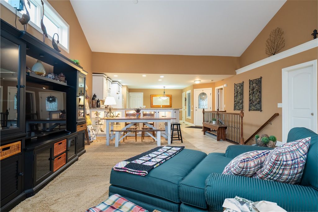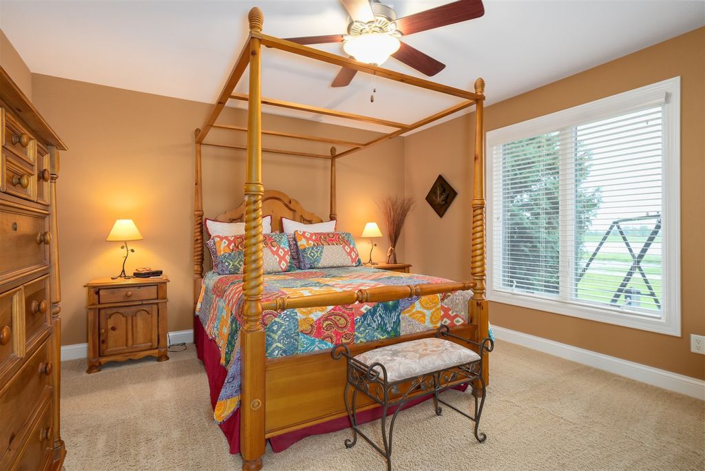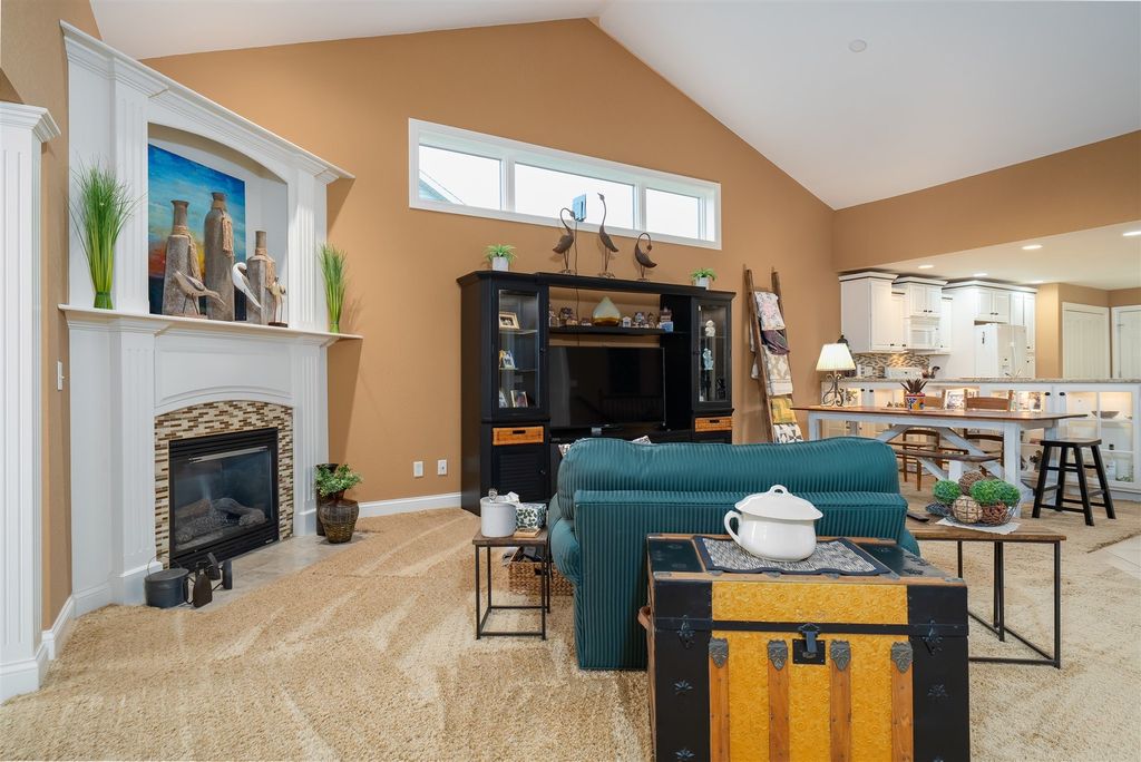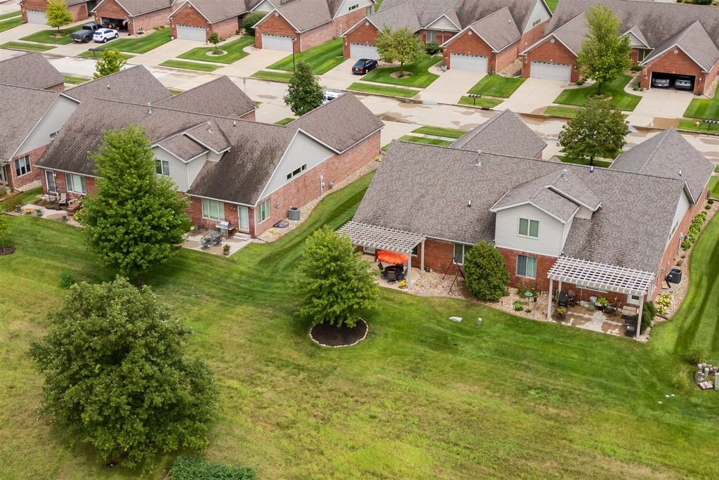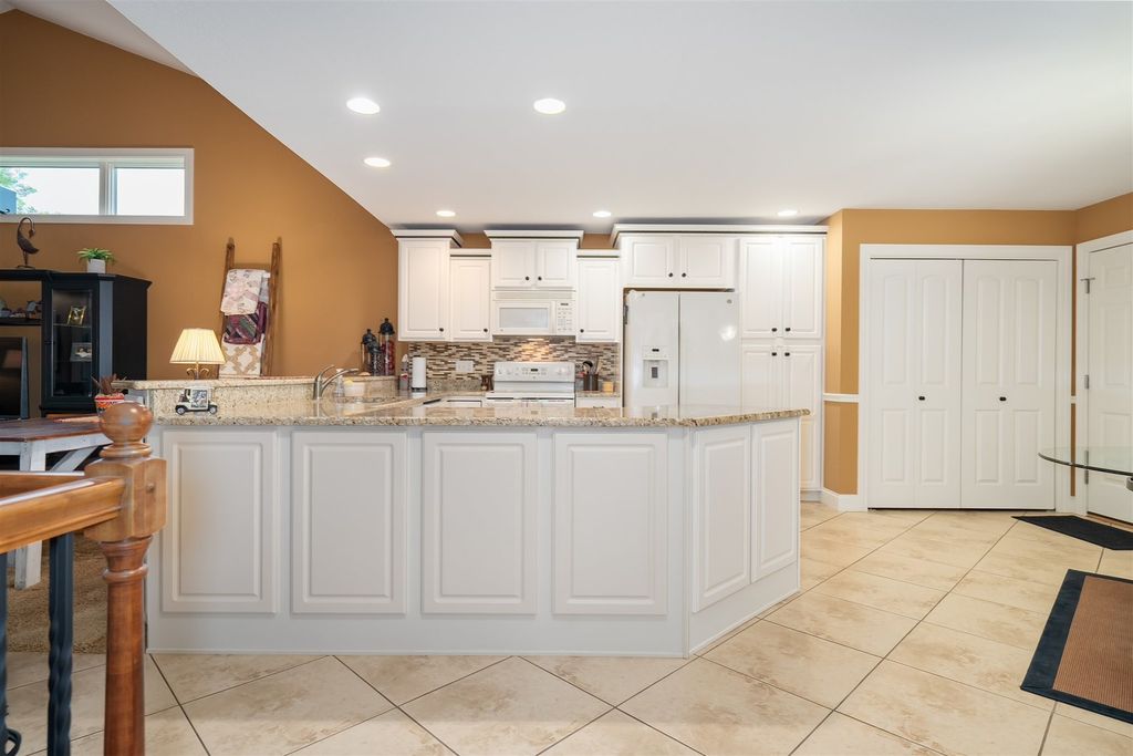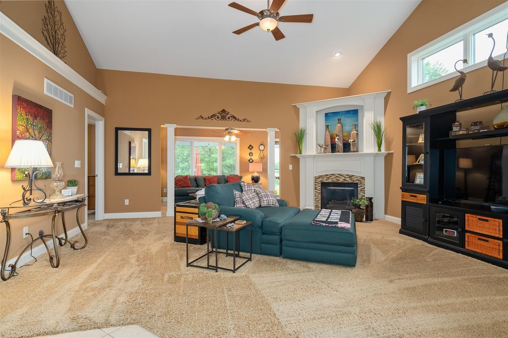 Welcome to 1713 Dunraven! This wonderful 2 Bedroom, 2 (full) Bath brick Ranch (duplex) is situated on The Links golf course (2nd tee) and offers fantastic GOLF COURSE and LAKE VIEWS! Enjoy the peace, quiet and pristine back yard views while also walking to golf, restaurants or the local brewery! This one owner property has been meticulously kept, offering over 3300 SF of living space with a 1st floor primary bedroom and laundry, cathedral ceiling, and a 4 SEASONS SUNROOM with abundant natural light to enjoy the sunsets. The beautiful Kitchen features quality white cabinets, appliances, a pantry, an extended island and upgraded cabinets with glass doors and shelving with built-in lighting. Bedrooms are spacious with walk-in closets and attached bathrooms with a modern look. Recent updates include; Pergola 2018, HVAC thermostat 2019, Sump Pump 2021, Roof 2021, Garbage Disposal 2021, Epoxy (TSR Coating) garage and patio 2022, Wi-Fi garage door opener and key pad 2022, and Refrigerator/Dishwasher 2023. HOA fees are just $130/month providing irrigation, lawn care, snow removal, clubhouse with gym, sauna & private inground pool. The spotless garage is nicely painted and the garage and patio are enhanced with a quality done epoxy coating. DON'T MISS THIS QUALITY BUILT BEAUTY READY FOR MOVE-IN!