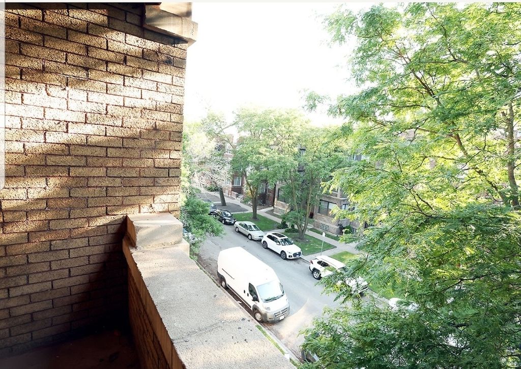 Beautiful sun filled 900 sq ft condo on tranquil tree lined street. Breathtaking treetop views and gleaming hardwood floors throughout!! Huge formal living room leads to great outdoor balcony space, providing cooling breezes and is ideal for coffee or cocktail time or simply relaxing!! Formal dining room boasts coiffed ceilings and tons of luxurious natural light adorning your living and entertaining space with family and friends. Updated bright sunny kitchen features quartz countertops with additional prep space, stainless steel appliances, and in unit washer/dryer. Generously sized bedroom will house king bedroom furniture and an intimate office or sitting space. Central air conditioning gives you maximum comfort all summer long. Enjoy quiet comfort in this vintage building, centrally located to everything Hyde Park has to offer, including gorgeous parks and fountains, the University of Chicago, shopping and entertainment, restaurants, Whole Foods and Trader Joe's!!! Public transportation is a half block away along with the U of C shuttle buses providing excellent accessibility!! Welcome home!!!! Property sold As-Is