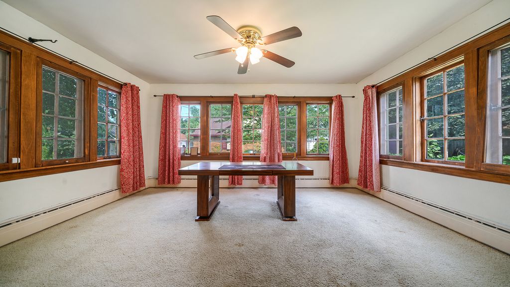 If you seek character and charm in the picturesque Churchill Grove neighborhood, your search ends here! This fully bricked residence exudes allure from the moment you approach the front door, which features elegant stone steps. Upon entering,you will be greeted by natural woodwork, complemented by a cozy wood-burning fireplace in the spacious living room. The room boasts a large curved wall adorned with windows, allowing an abundance of natural light to fill the space. The dining room showcases beautiful wood flooring and charming built-ins for added storage. The bright kitchen features tile flooring and an attractive backsplash. Additionally, the main floor includes a generously sized den, office, or sunroom, as well as a convenient half bathroom. Upstairs, you will discover three bedrooms, one of which includes an attached additional space that offers endless possibilities. The full bathroom upstairs is enhanced by classic octagon tile flooring and subway tile walls.The basement provides several rooms for additional storage or customization, along with a second half bathroom. Outside,a concrete patio awaits, ideal for relaxation, entertaining, or grilling your favorite meals. Completing this exceptional property is a spacious two-and-a-half-car garage with a loft above. New roof 2024. Seller will be leaving couches, tables and beds.
