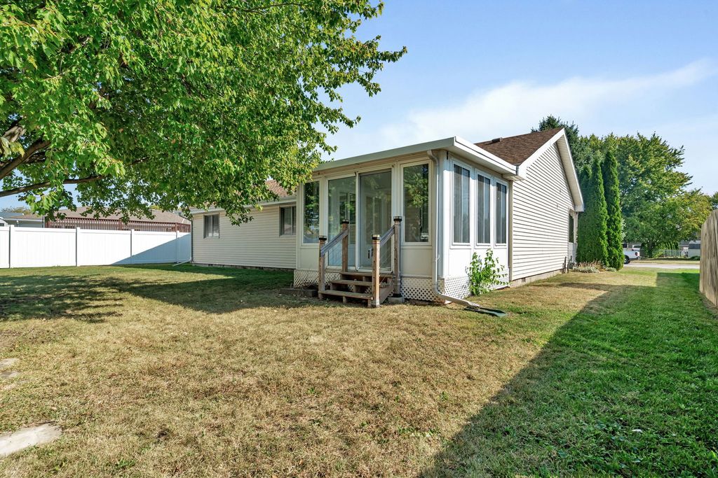 Beautiful maintenance free brick and vinyl ranch with 3 bedrooms, 2 baths, 2 car garage and spacious back yard. Cozy three season room leading out to the back yard through sliding glass doors. The kitchen has lots of counter space and cabinets. The main bedroom has its own bath with walk in shower & walk in closet. The picture window has two slides to allow the breeze to flow on summer days. This home has a newer water heater, stainless steel appliances. Solar panels are leased. Buyer has the option or renew lease, buy panels or have them removed at the end of the lease. Yard ornaments, freezer, and shelving unites in garage are not staying.
