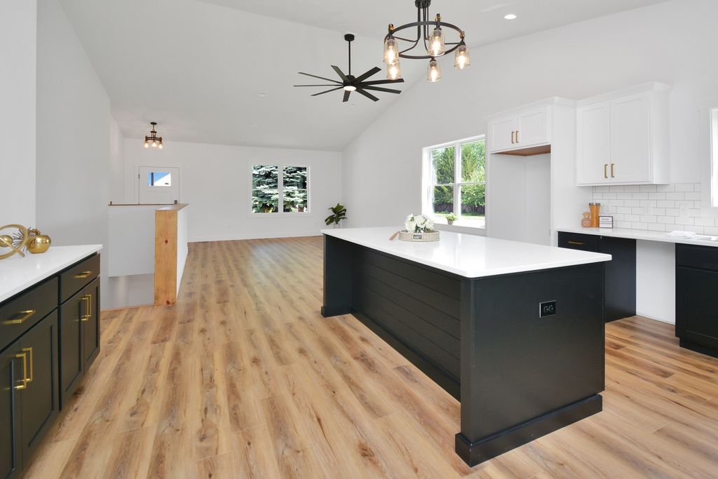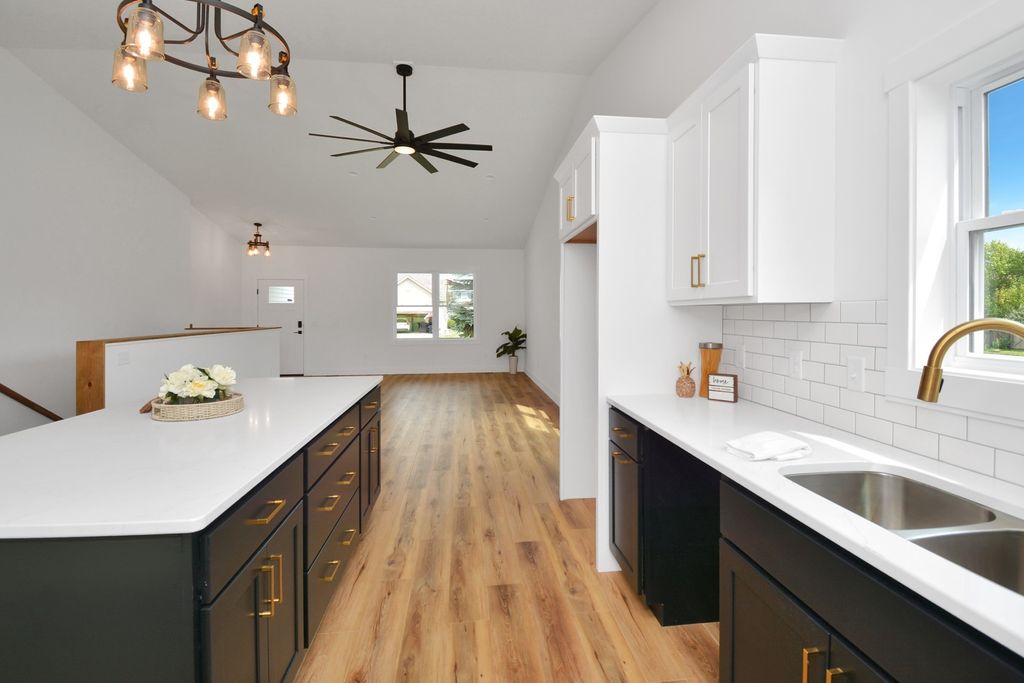 Quality That Speaks for Itself. This is not your typical new construction. From the moment you arrive, it's clear: every inch of this Schmillen-built ranch home in East Bloomington's Waterford Estates was carefully considered, thoughtfully designed, and executed with a level of craftsmanship that sets it apart. Positioned on a corner lot with a wide front porch perfect for morning coffee, this home greets you with warmth and light. Inside, the open-concept living, dining, and kitchen space is flooded with natural sunlight thanks to an abundance of windows. The soaring cathedral ceilings and seamless LVP flooring create a crisp, cohesive look that feels both modern and welcoming. The kitchen is a true standout-anchored by a massive quartz-topped island and flanked by custom cabinetry that goes far beyond the standard. A full pantry cabinet, additional wall of built-ins ideal for a coffee bar or serving station, and sleek fixtures all combine to create a space that is as functional as it is beautiful. It's rare to find this level of finish and forethought in today's market-especially at this price point. With over 2,800 finished square feet, the layout is smart and spacious. The main level features two bedrooms and two full baths, including a primary suite that is a true retreat. Dual closets, an oversized tiled walk-in shower, dual vanities, and rich tile flooring define the en suite bath. You'll also find a full laundry room and a custom drop zone with built-in cubbies-designed for real life. One of the most unexpected and delightful design elements? The extra-wide staircase leading to the finished basement, where 9-foot ceilings continue the sense of volume and openness. Downstairs you'll find two more bedrooms, another full bath, and a generously sized second living space-ideal for movie nights, game days, or hosting guests. Even the garage deserves a mention: oversized and attached, with room for two vehicles and more. Outdoor living is just as appealing with a covered front porch and a covered back patio off the kitchen, perfect for evening relaxation or weekend barbecues. This home offers convenience and peace of mind in equal measure. In a world of cookie-cutter construction, this one stands out-for all the right reasons.