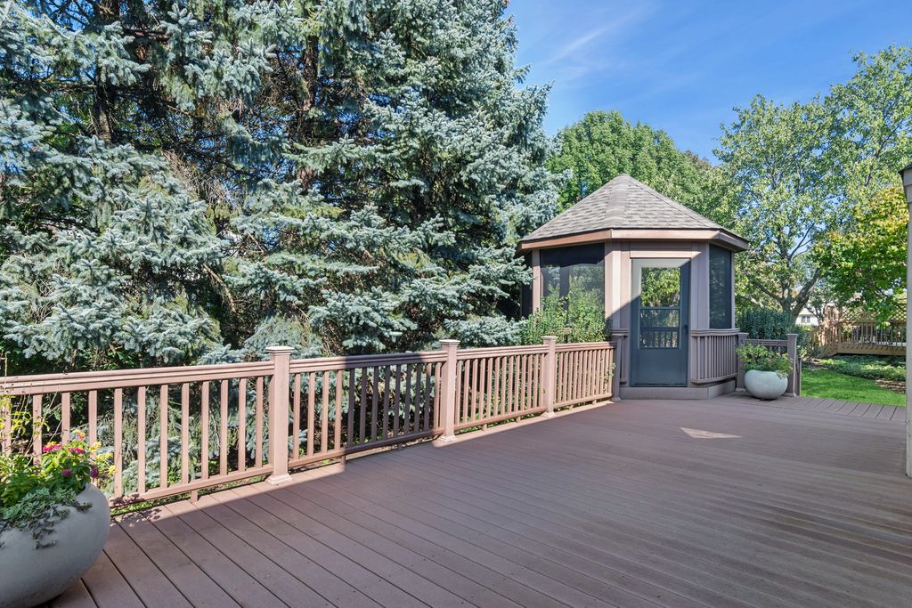 Welcome to this updated and meticulous 4-bedroom residence, perfectly situated on a quiet street in North Naperville. This move-in-ready home offers a flawless blend of style and comfort across every level. You'll be greeted by pristine hardwood floors that extend throughout the main and upper floors and large windows for plenty of light. The kitchen features beautiful wood cabinetry with pull out drawers, granite countertops, stone backsplash, large island, stainless appliances, 2 pantries and a door to the large maintenance free deck. The two-sided fireplace creates a warm and inviting ambiance in both the family room and a versatile first-floor den, perfect for a home office or quiet reading space. The large living and dining rooms are the perfect place to entertain. There is also a full 1st floor bath and laundry room. The primary suite is designed for tranquility, boasting two walk-in closets and a spa-like updated bath featuring a double bowl vanity, quartz countertop, arched window and a large walk-in shower. There are also three other spacious bedrooms and an updated bath on the second floor. The finished basement is a perfect multi-purpose area for a rec room, home gym or play room. Enjoy the privacy of the tree-lined backyard and outdoor living on the large deck, complete with a gazebo for shade and relaxation. The garage, outfitted with a storage system, ensures everything has a place. Experience the joy of a fully updated home in an ideal, low-traffic location and convenient to both I88 and downtown Naperville.