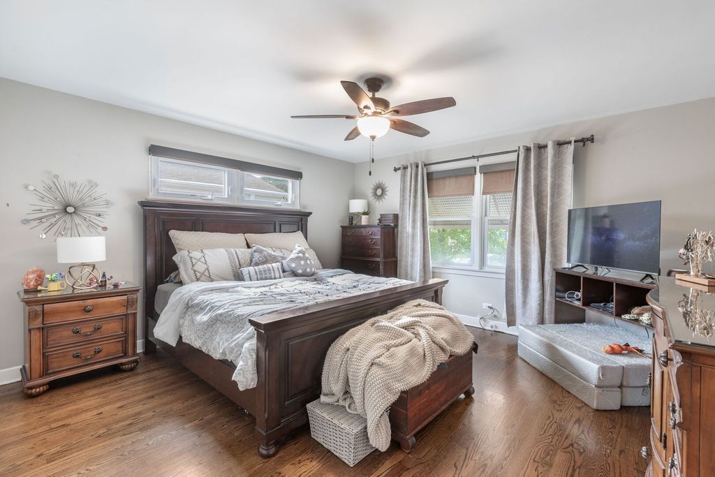 AMAZING IN-LAW POTENTIAL! Expansive, stylish corner ranch with room to spare! The updated kitchen shines with granite countertops, high-end stainless steel appliances (Bosch dishwasher and Dacor stove and microwave) and 42 inch cabinets w/ a breakfast bar that seamlessly connects to a bright dining room bathed in natural light. A spacious living room awaits with a gas fireplace, a large bay window, and gleaming hardwood floors. The home includes a primary bath, a half bath, and generously sized bedrooms with abundant storage space. Downstairs, the finished basement offers an impressive space for entertaining, complete with new luxury vinyl plank flooring, a second gas fireplace, a bar, and a full bath. Completing the lower level is a large laundry room and an additional bedroom. Outside, enjoy a beautifully landscaped yard with a patio and a new privacy fence. Simply move in and start making memories in this inviting home! *Please note there is no homeowners exemption on the taxes*