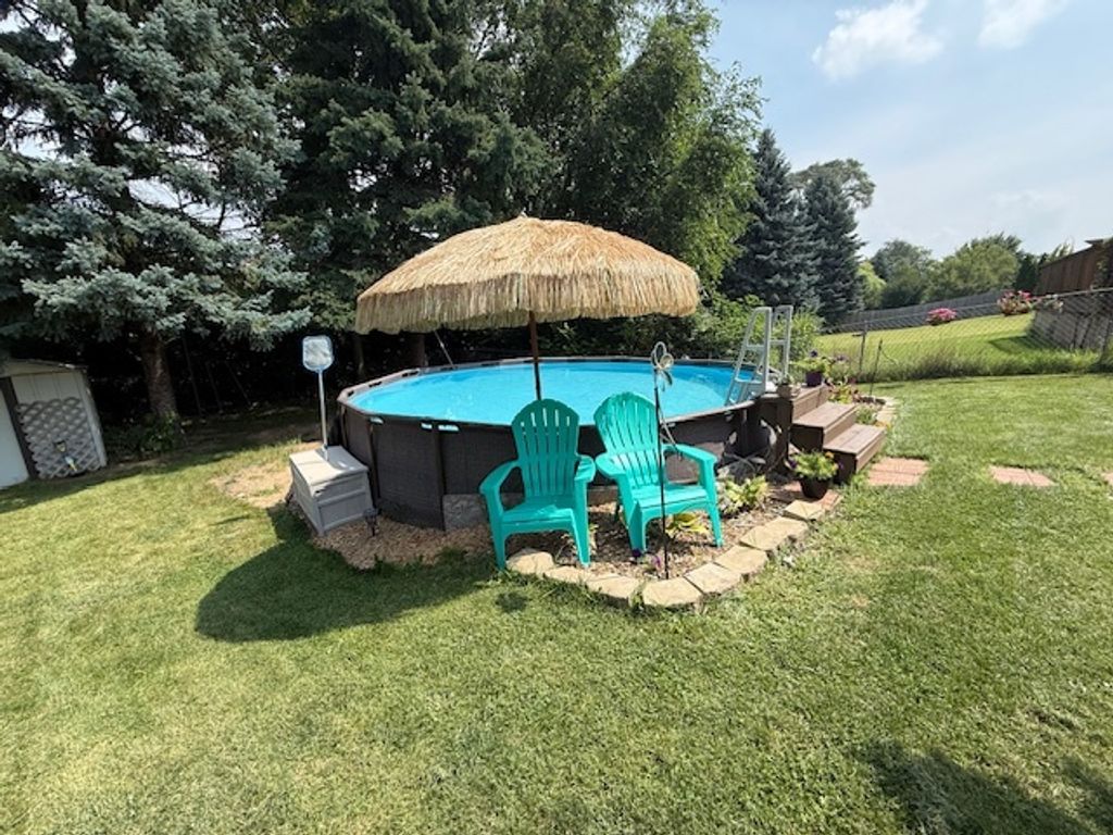 Welcome home to your private retreat! This charming tri-level home is designed for living and effortless entertaining. The heart of the home, the kitchen, boasts brand-new flooring, while the serene bedrooms offer plush new carpeting for ultimate comfort. Discover outside a true backyard paradise. The covered porch is perfect for sipping morning coffee or hosting evening gatherings. The fully fenced yard, complete with an above-ground pool, promises endless summer days of relaxation and fun. With a convenient 2-car attached garage and a handy storage shed, everything has its place. Perfectly situated just minutes from major highways (I-90/39/20), this location offers an easy commute without sacrificing the peaceful feel of a private neighborhood.