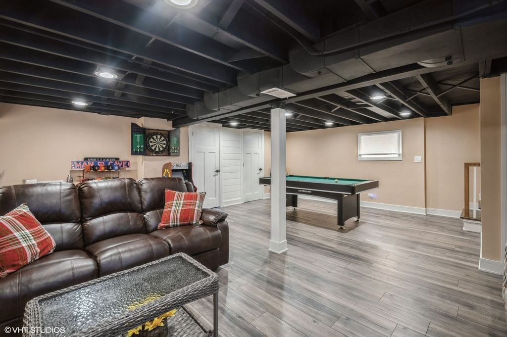 This beautifully updated all-brick residence offers 4 spacious bedrooms and 2 luxurious full bathrooms, all fully remodeled with modern finishes throughout. Step into a sleek, contemporary kitchen featuring white shaker cabinets, stainless steel appliances, and elegant quartz countertops. Rich hardwood floors flow throughout the main level, complemented by two chic electric fireplaces, stylish lighting, modern ceiling fans, and brand-new doors. Enjoy the versatility of a full finished basement, perfect for entertaining or extra living space. Peace of mind comes with major updates including a new water heater, upgraded plumbing and electrical systems (village approved), a new sump pump, flood control system, and new garage door motors. Outside, you'll find a concrete patio and driveway leading to a spacious 2.5-car garage. Ideally located near the train, schools, parks, and shopping-this move-in ready home is the total package.