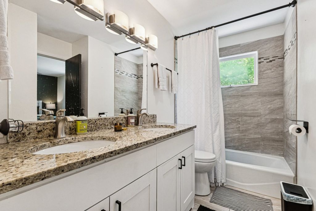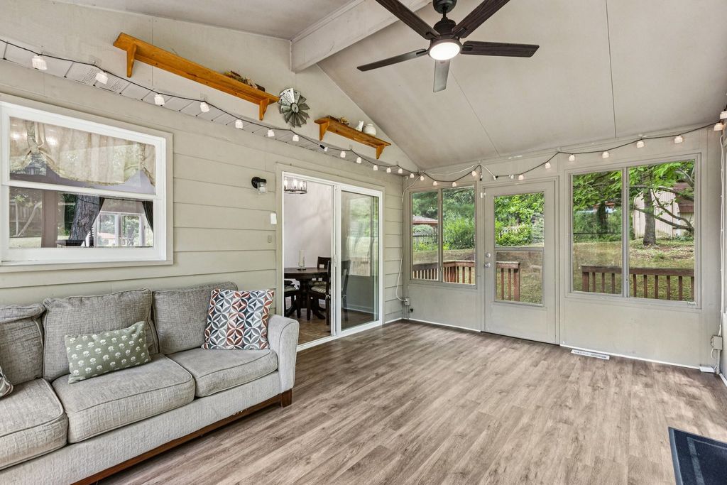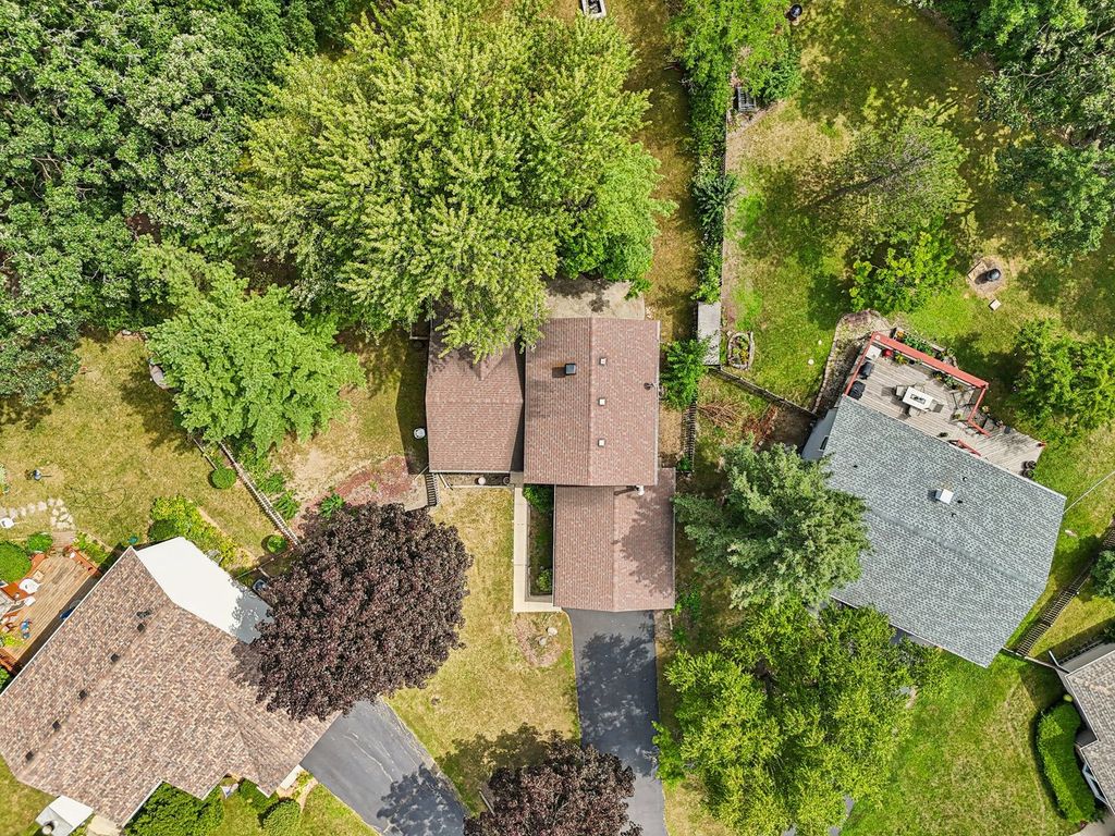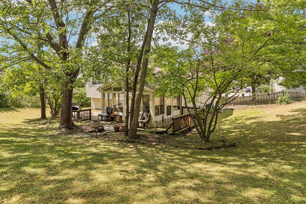 If you've been waiting for the right home in a top-tier school district, this is it! Tucked at the end of a cul-de-sac on nearly half an acre of wooded, fenced privacy, this tri-level gives you the space, comfort, and lifestyle you've been searching for. The open main level connects a bright vaulted kitchen with granite counters and stainless appliances to a living and dining area made for easy hosting. Step into the sunroom, onto the wrap-around deck, or down to the patio and feel like you're in your own private park. Upstairs offers a primary suite plus two more bedrooms and a full bath with double sinks, while the cozy lower level with a wood-burning stove is perfect for movie nights. With recent major updates already done, you can move in and start enjoying the location, the yard, and the peace of mind that comes with buying in one of the most sought-after school districts in the area. **Key updates: Sump pump & battery backup system ('25), Furnace & A/C ('23), Wood laminate flooring ('21), whole house interior paint ('24), whole house light fixtures ('21), Driveway sealed ('25)**