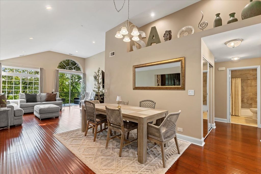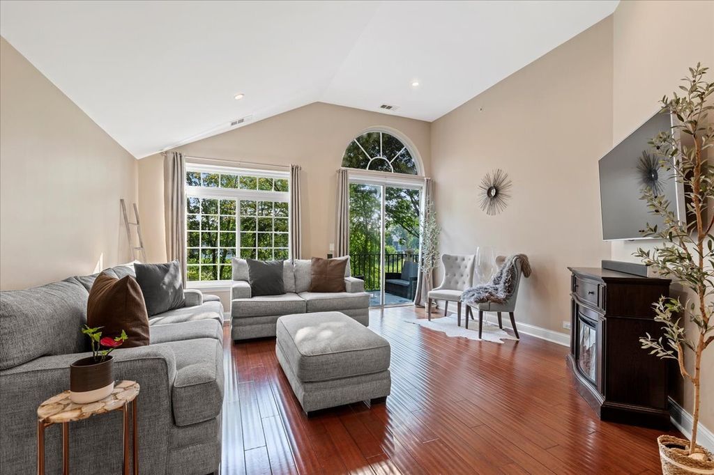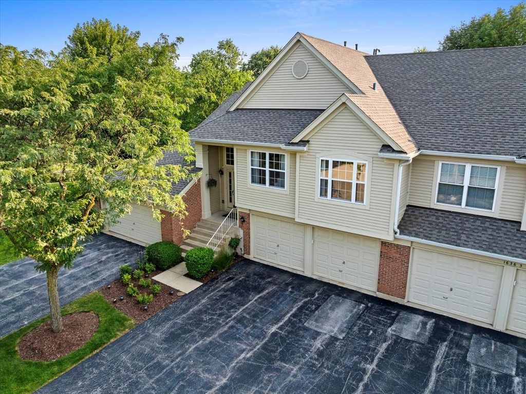 Don't miss out on this beautiful 2-bedroom + loft home! Step inside and feel the true pride of ownership and inviting charm from the moment you enter. Located in the highly sought-after Fairfax Silvercrest community, this meticulously maintained home offers an open floor plan with dramatic vaulted ceilings, recessed lighting, and an abundance of natural light that fills the living space. The loft/ flex room offers versatile use and is perfect for a home office, kids' space, or family room. The updated kitchen is a chef's dream with granite countertops, an eat-in island, glass tile backsplash, stainless steel appliances, a deep country sink, counter-depth refrigerator, bar-height breakfast bar, and ProCraft solid wood cabinetry with soft-close drawers. Throughout the main living areas, enjoy the richness of three-quarter inch cherry bamboo hardwood flooring. Generous closet space and additional storage provide plenty of room for organization. The primary suite features a large walk-in closet and a beautifully updated en-suite bathroom with dual sinks, soft-close vanity drawers, a spacious walk-in shower, and elegant porcelain tile in both bathrooms. Recent mechanical updates include HVAC and roof in 2018, humidifier in 2022, water heater 2021, washer in 2021, and dryer in 2023. A two-car attached garage adds convenience, with plenty of exterior parking available. Nestled on a quiet and private cul-de-sac, enjoy peaceful mornings and serene evenings from your balcony overlooking the pond and tranquil natural surroundings. This home is part of a true sense of community, located near parks and schools, with the brand new Hawk Hollow Middle School opening for the 2025 to 2026 school year. Truly a turn-key home - just move in and enjoy all the community has to offer.