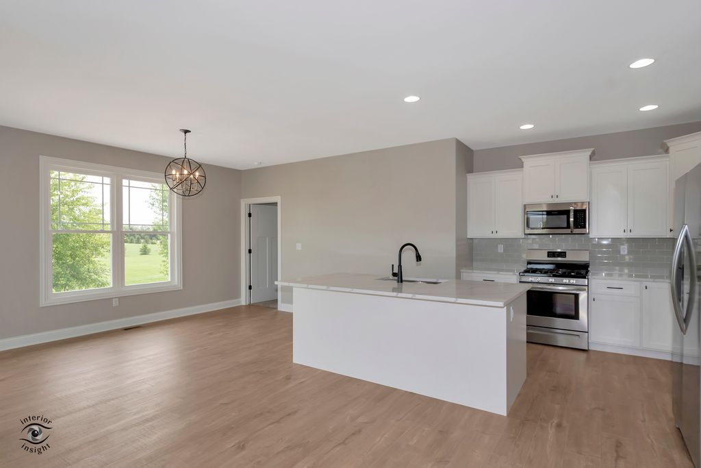 Welcome to this exceptional new construction corner unit in the sought-after Eagles Landing subdivision, a townhome community offering the perfect blend of style, comfort, and convenience. Ideally located just minutes from I-57 and only 40 minutes from downtown Chicago, it's a dream for daily commuters. Step through the elegant bricked archway into a beautifully designed split floor plan ranch featuring three bedrooms and two bathrooms. The open-concept layout seamlessly connects the kitchen, dining, and living areas, creating a warm and inviting space for everyday living and entertaining. The chef's kitchen is a standout, with custom white cabinetry, quartz countertops, high-end stainless steel appliances, and a spacious island that doubles as additional seating and storage. The adjoining dining and living areas are bathed in natural light and centered around a cozy fireplace. The primary suite offers a peaceful retreat, complete with a spa-like ensuite featuring double vanity sinks and a large walk-in closet. Additional highlights include a two-car attached garage with ample storage and convenient access to the crawl space. With the HOA handling seasonal outdoor maintenance, you can simply relax and enjoy everything this beautiful home has to offer. Additional floorpans are also available. Estimated completion is January 2026. Photos are of a previously completed model. Contact the listing agent for more details or to schedule a private showing.