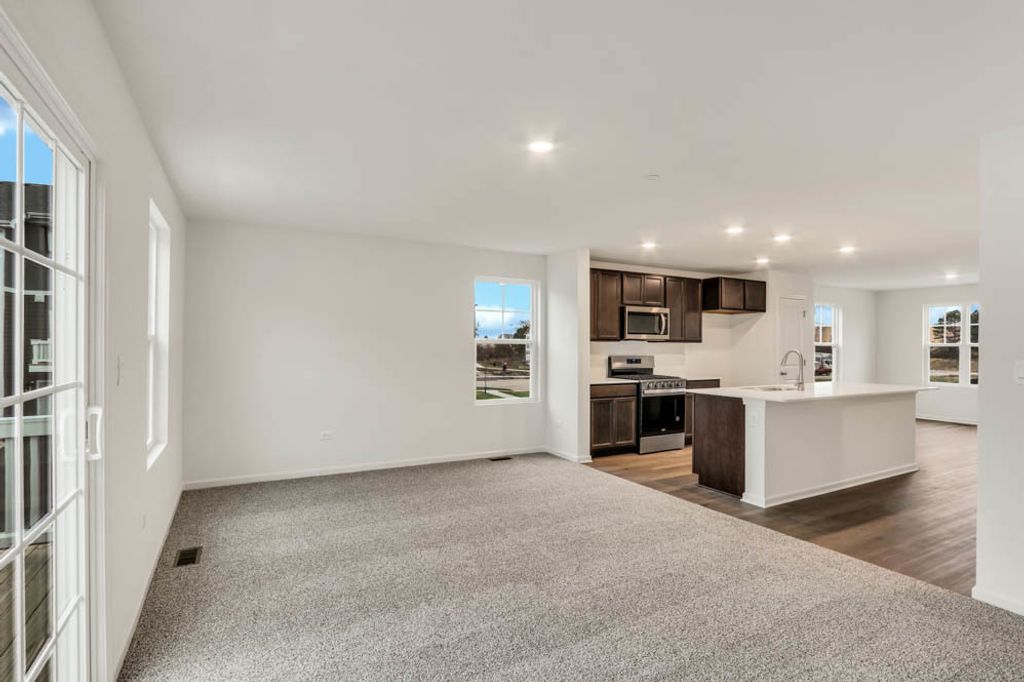 Discover yourself at 361 Bridgeview Ct., a beautiful new home in our Charlestowne Lakes community in St. Charles, Illinois. This townhome will be ready for a fall move-in! Homesite includes a fully sodded yard that is maintained throughout the year. This END UNIT Grant townhome plan offers over 1,800 square feet of living space with 3 bedrooms, 2.5 baths, and finished flex room. As soon as you step inside, you'll be greeted by the finished flex room, which is perfect as a den or playroom. Walking up the stairs, you will find this home's open concept living space. The expansive kitchen overlooks both the front dining and back great room areas, making it the ideal space to entertain. Additionally, your kitchen features flagstone designer cabinetry, a spacious island with quartz countertops, and pantry. Enjoy your large primary bedroom with a walk-in closet and connecting en suite bathroom. The rest of the upper level features a laundry room, secondary bedrooms with a full second bath, and linen closet. You'll find luxury vinyl plank flooring in the kitchen and dining areas on the main level living space, bathrooms, and laundry. Impressive innovative ERV furnace system and tankless water heater round out the amazing features this home has to offer! Charlestowne Lakes is an upscale townhome community, tucked off Rt. 64, in a highly desirable area, loaded with everyday conveniences, and just minutes from the flourishing downtown St. Charles. All Chicago homes include our America's Smart Home Technology, featuring a smart video doorbell, smart Honeywell thermostat, Amazon Echo Pop, smart door lock, Deako smart light switches and more. Photos are of similar home and model home. Actual home built may vary.