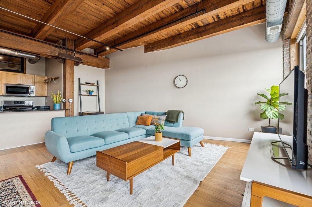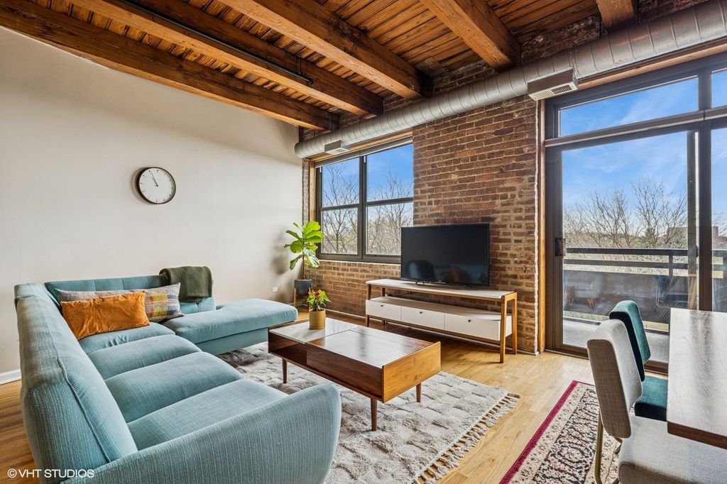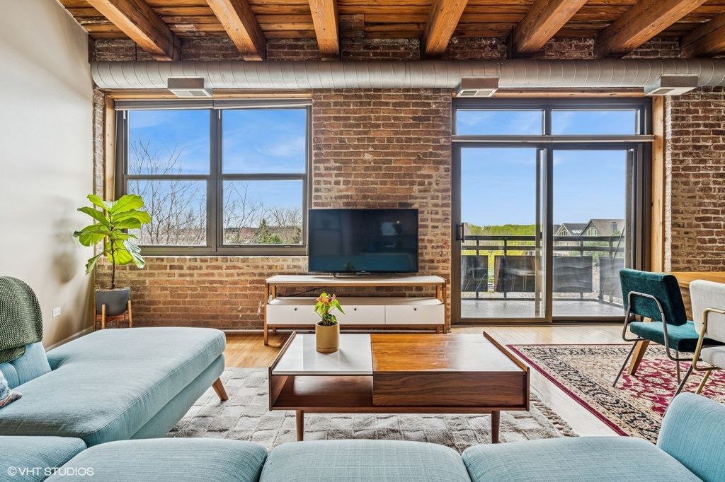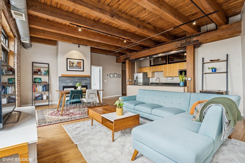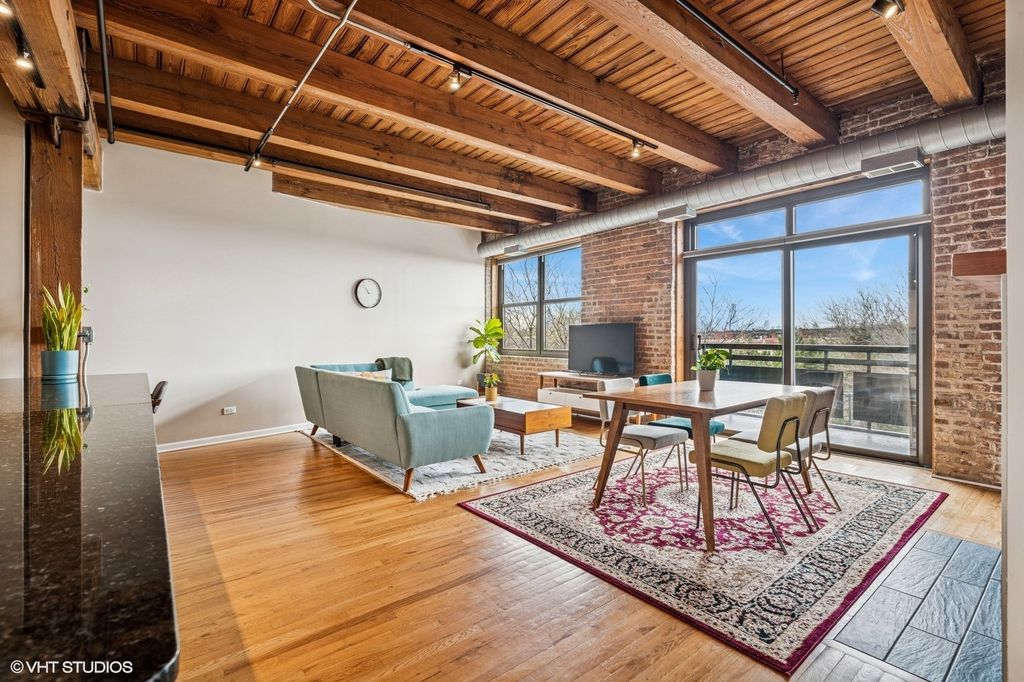 Rarely Available South-Facing Brick & Timber Loft in Regal Lofts - Lincoln Park! Welcome to this stunning 2 bed, 2 bath south-facing loft. On the opposite side of Diversey Parkway, this unit offers the perfect blend of classic character and modern updates in a prime Lincoln Park location. This sought-after floor plan features exposed brick and timber beams, hardwood floors, and abundant natural light pouring in through oversized windows with full southern exposure. The spacious open-concept living area includes a spacious kitchen with granite countertops, tons of cabinetry, stainless steel appliances, and a generous breakfast bar. The bright living room is anchored by a remote-start gas fireplace and seamlessly opens to a private balcony offering breathtaking skyline views-visible from both the great room and primary bedroom. A dedicated dining area features a modern light fixture and a convenient built-in nook, ideal for a bar setup or work-from-home space. The fully enclosed primary suite boasts custom Elfa closets and an en-suite bath with double vanity and soaking tub/shower combo. The second bedroom is fully enclosed with privacy glass providing separation and light. Also boasting plush carpeting, and a custom Elfa closet. The second full bath, located off the main hallway, includes a tub/shower combo. Notable features include linen and coat closets, an in-unit washer/dryer, and a Nest Thermostat. Deeded exterior parking in a secured gated lot and a dedicated storage cage are included in the sale. Regal Lofts is a well-managed, pet-friendly elevator building offering an exercise room, dog run, ButterflyMX intercom system, and guest parking. Ideally located, this home is minutes from 90/94, the Diversey Brown Line, and bus routes. Enjoy being just steps to Hamlin, Wrightwood, and Che-Chi Wang Parks and having Midtown Athletic Club, Whole Foods, Costco, Hexe Coffee right outside your door!