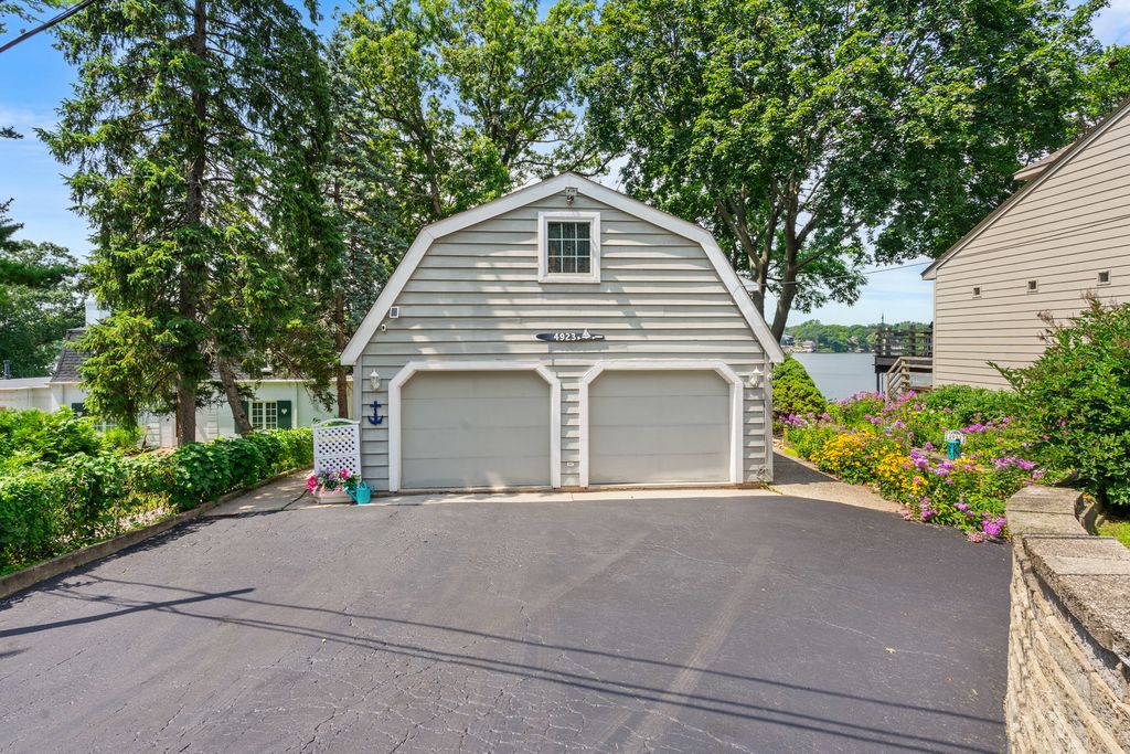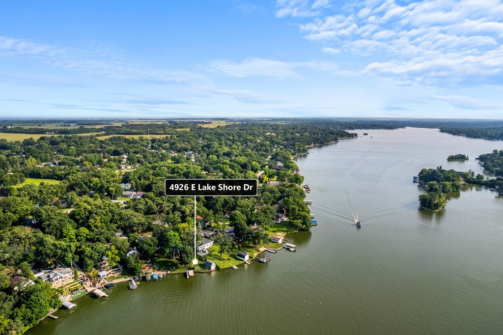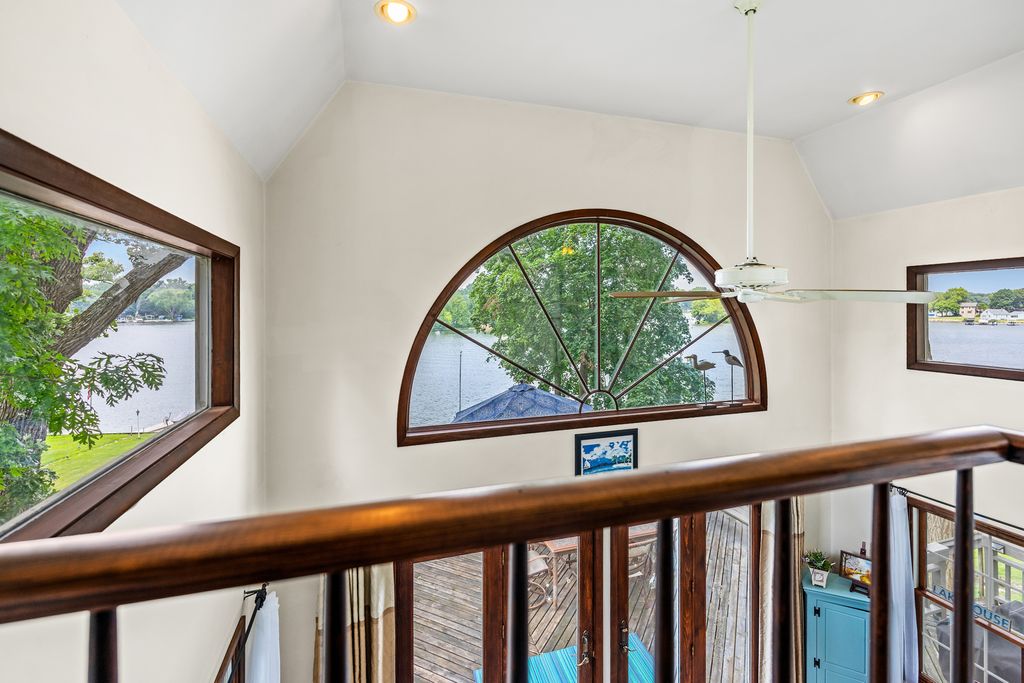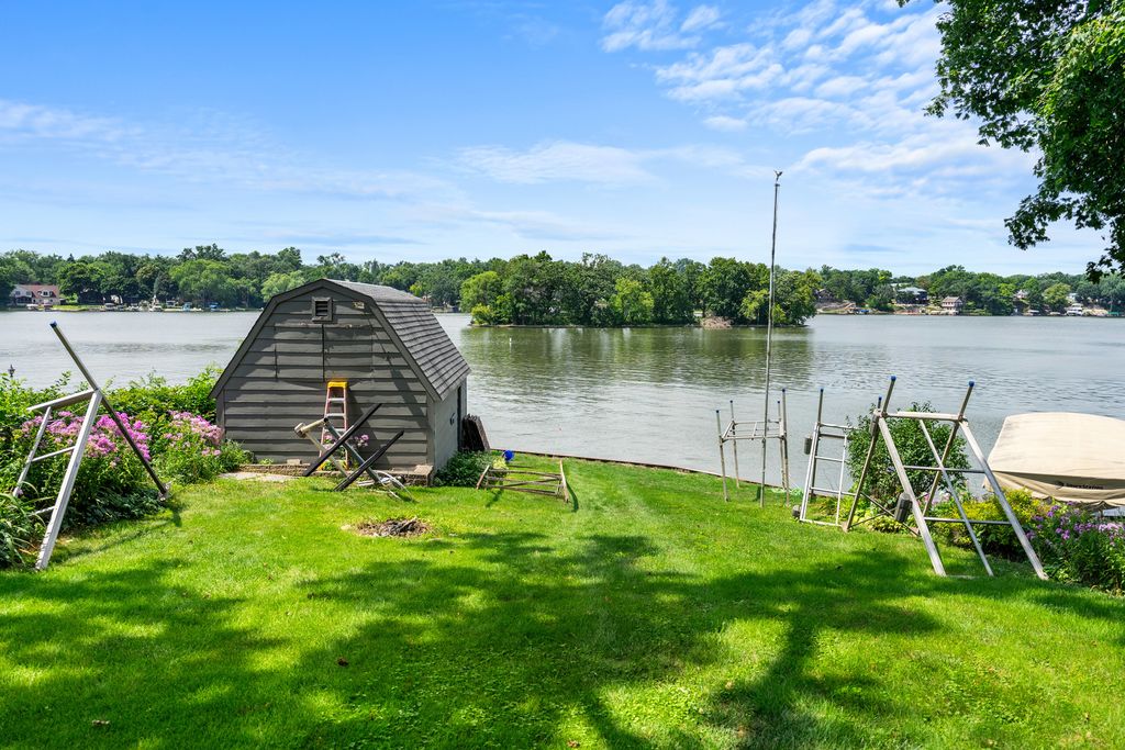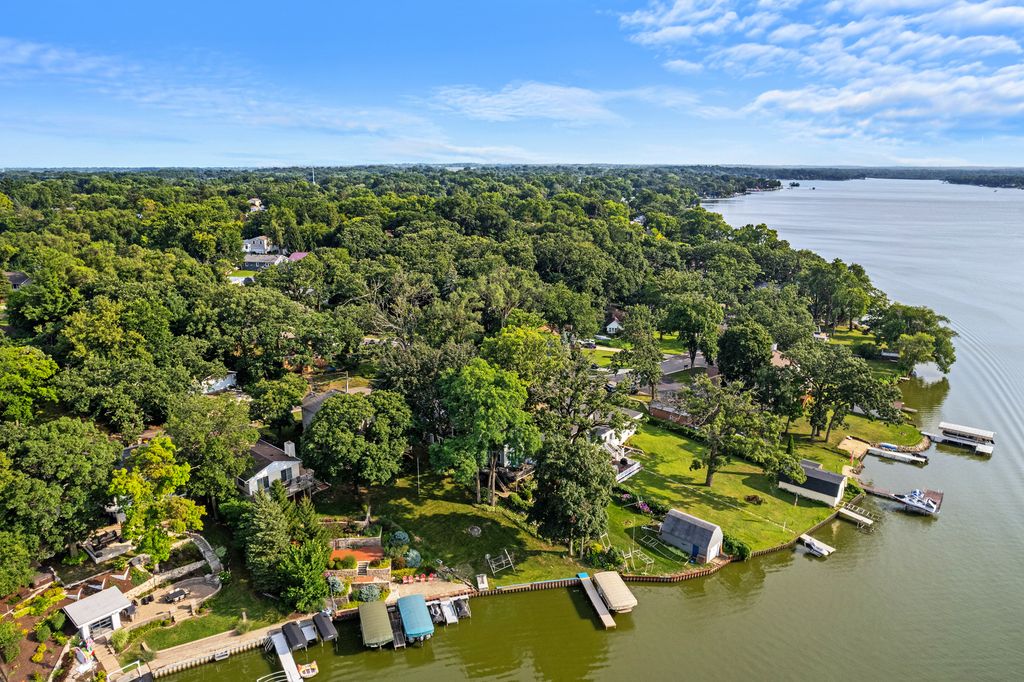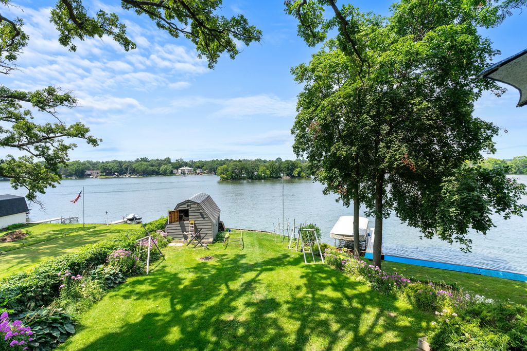 Welcome to your dream lakefront home with a master bedroom suite, 2 car garage, boat house and great sunset lake views. Perfect for a large family or entertaining overnight guests with 4 bedrooms, 3.5 baths and around 3,000 sq ft. Enjoy the main level's open floor plan that includes living, family, dining, breakfast, laundry rooms, kitchen, office and deck. The living room has custom woodwork and a fireplace for those cozy winter nights. There is an extra-large deck for entertaining large groups or just to have your morning coffee or watch the sunset with a glass of wine. The upstairs has a large master bedroom suite, master bath and multi room closet. There are 3 additional bedrooms with large closets and a large full bath. Two of the bedrooms have balconies overlooking the family room and lake. The walkout basement offers a spacious recreation room, wet bar, bath, fireplace, utility room and pool table. There is a gardener's workshop for lawn tools, water toys and outside furniture. The boat house has a rail system, plenty of storage in its attic and can include a ski boat. There are also a central vacuum, whole house fan and 2 HVAC systems and 400-amp circuit breaker box. Wonder Lake is an 840 acre private lake that is 3 miles long and great for boating, swimming, sailing, skiing and fishing. There are ski shows most weekends by its nationally ranked ski club and yacht club sailboat races on Sunday mornings.