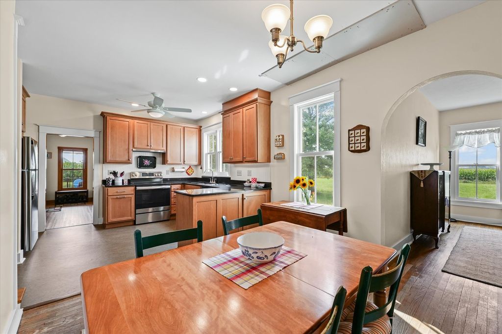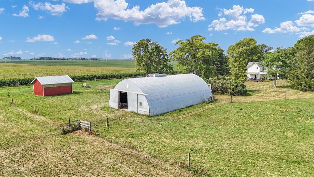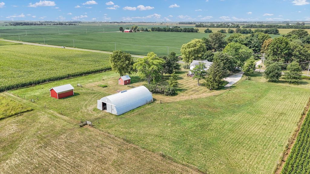 Looking for the perfect blend of peace, space, and convenience? This stunning country property offers just under 5 acres, nestled minutes from both Champaign and Mahomet. Whether you dream of homesteading, starting a hobby farm, or simply enjoying wide-open space, this property delivers. The property features a half-acre of restored prairie, mature oak, hackberry, and sugar maple trees, plus everything you need for animals or projects: a 64'x36' Quonset hut with concrete floor and electric, a 24'x18' run-in/loafing shed, and an 18'x15' wooden shed-perfect for a chicken coop or gardening shed. Electric fencing is already in place, making it move-in ready for horses or other animals. Inside, you'll find over 2,400 square feet of beautifully updated living space with hardwood floors flowing through much of the home. The kitchen underwent a complete remodel in 2021, featuring insulated walls, all-new electrical (including a new panel in the basement), maple cabinetry, quartz countertops, stainless steel appliances, a rebuilt walk-in pantry for added storage, and a new window overlooking the yard. Just off the kitchen, a charming laundry/powder room highlights a built-in cabinet that's over 100 years old, adding character and history to the home. Upstairs, the primary suite features its own private bath, complemented by three additional bedrooms and a second full bathroom. Comfort is ensured with dual zoned HVAC, with the first-floor system replaced in 2016 and the second-floor system added in 2021. Major updates throughout the years include a new well and pump in 2009, a septic tank and aerator with a rebuilt drainage field in 2016, and a water heater in 2021, giving you peace of mind for years to come. This property is a rare find where country charm, modern updates, and practical amenities meet.