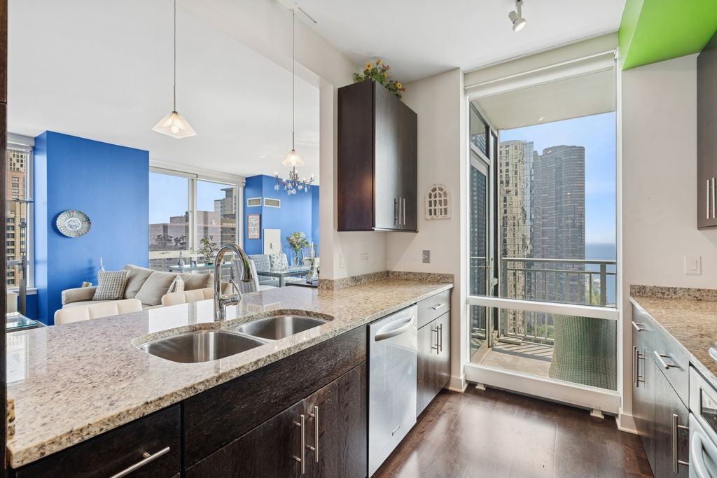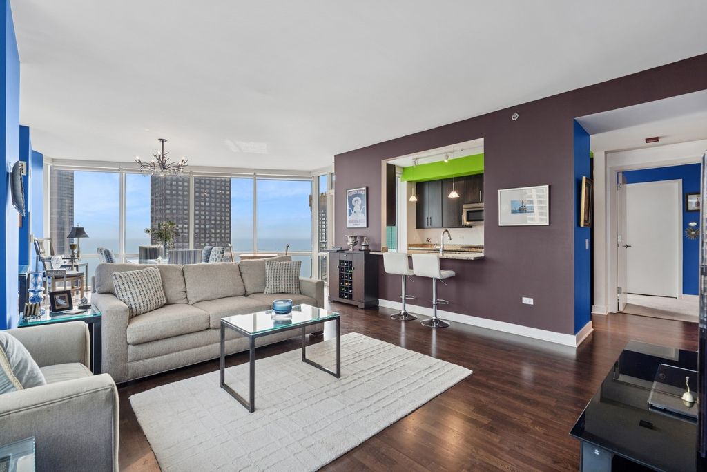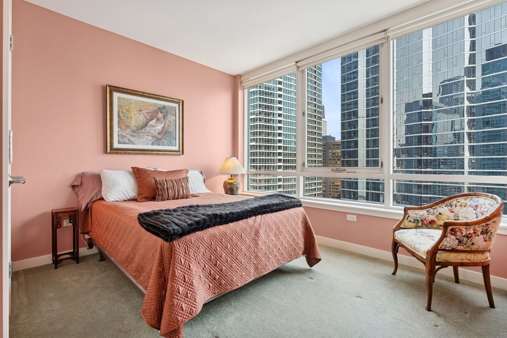 Don't miss this high floor 2BR/2BA corner unit, the largest floorplan with a wall of floor to ceiling windows! The panoramic views of Lake Michigan, the Chicago River, Bennett Park and the city skyline, and abundant natural light pour in through expansive floor-to-ceiling windows. This thoughtfully designed split floor plan creates an ideal, open-concept living and entertaining space while also offering ultimate privacy for both bedrooms. The living/dining space is expansive by city standards, and can easily accommodate an 8-top dining table. Enjoy a morning cup of joe while watching the sun rise from the private, east-facing balcony with lake views. In the primary suite, luxury and comfort were at the forefront of design, which perfectly fits a king size bed. Retreat to the ensuite primary bathroom with dual vanities, walk-in shower and separate whirlpool tub. The hall bathroom is conveniently adjacent to the second bedroom, creating a private ensuite-like experience for guests or family members. Working from home and having a guest room is possible in this second bedroom. An in-unit laundry makes life easy, as do the storage locker included in the price. Gas cooking and 4 pipe heating system. Indulge in the ParkView's full suite of amenities including a 24/7 door staff, outdoor pool & hot tub, fitness center, hospitality room and resident lounge. Deeded parking space #505 is available for 45,000 additional. This Streeterville location cannot be beat, as everything is right outside the door. Across the street from Target, several coffee shops like Cupitol, and plenty of restaurants like Robert's Pizza, D4, Pinstripes, Molly's Cupcakes, Carson's and Yolk all within one block. AMC Movie Theatre, Lucky Strike Bowling, Navy Pier, Ohio Street Beach & Park, Michigan Avenue/Mag Mile, are all within 2-3 blocks. ParkView has a dog run via the adjacent Bennett Park dog park with separate spaces for both large and small dogs. A great condo in an excellent building and in the best neighborhood, Streeterville!