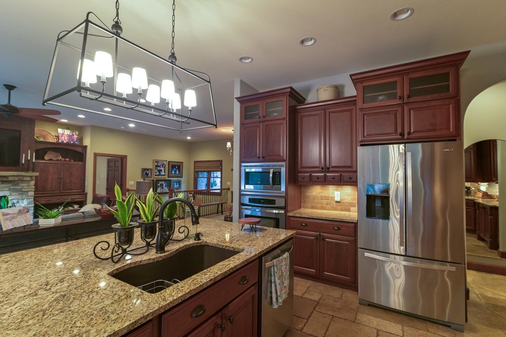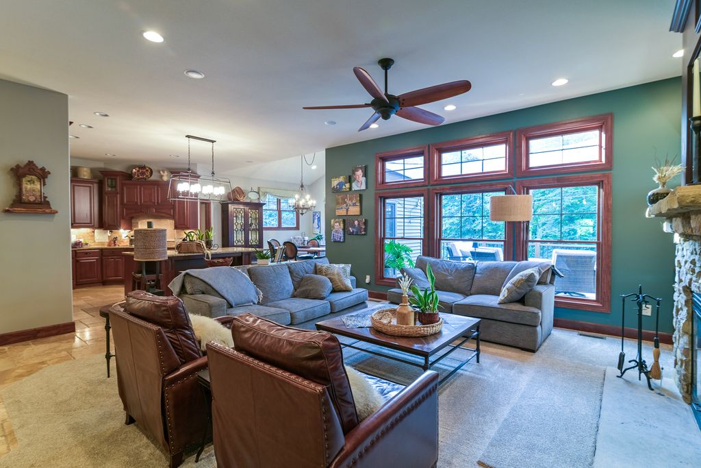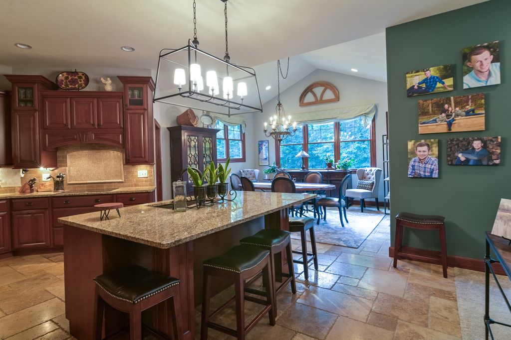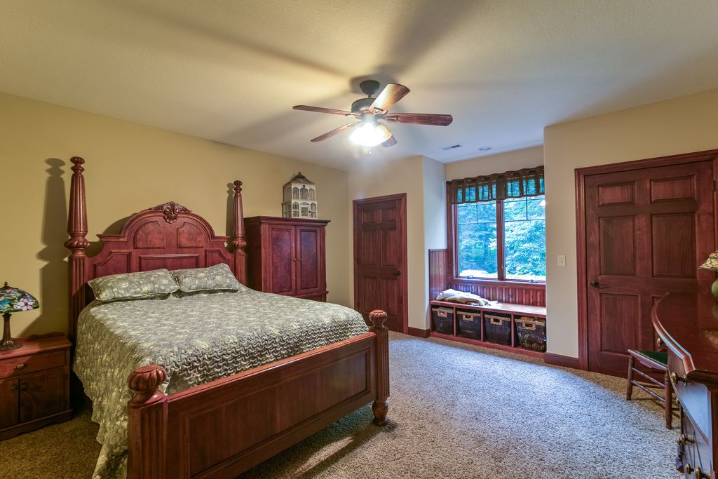 Discover quality and comfort in this stunning custom-built home nestled on 9 acres of timber with trails, wild berries, and privacy. Thoughtfully designed with timeless craftsmanship and modern amenities, this property is perfect for those seeking luxury and functionality both indoors and out. Inside, you'll find Amish cabinetry throughout including the custom kitchen with granite counter tops and large walk-in pantry. The home boasts three fireplaces, a gas fireplace in the primary bedroom, a wood-burning fireplace in the great room, and an electric fireplace in the lower level. Enjoy whole-house and built-in audio systems , a geothermal heating and cooling system with three separate HVAC zones for personalized comfort. Additional interior highlights include matching granite counter tops throughout the home, travertine tile floor, 10 foot ceilings on the main floor plus a cathedral ceiling in the dining area, 9' basement ceilings in the walk-out basement, 5" baseboards, rounded drywall corners, under cabinets lighting in the kitchen along with accent lighting on the glass-front cabinets. Tray ceiling in the primary suite with bedside lighting control, two walk-in closets, separate sinks and a tiled walk-in shower and heated floors. Outside you will enjoy a fully landscaped property with low maintenance exterior finishes along with a composite deck with a gas line for the grill and a screened-in porch. Oversized heated 3-Car attached garage with cabinetry, sink and 2nd stairway access to the basement. The 9-acre timber includes red, white & black oak, hickory, cherry, sugar maple, and more, and is ideal for hiking, hunting, or simply enjoying nature.