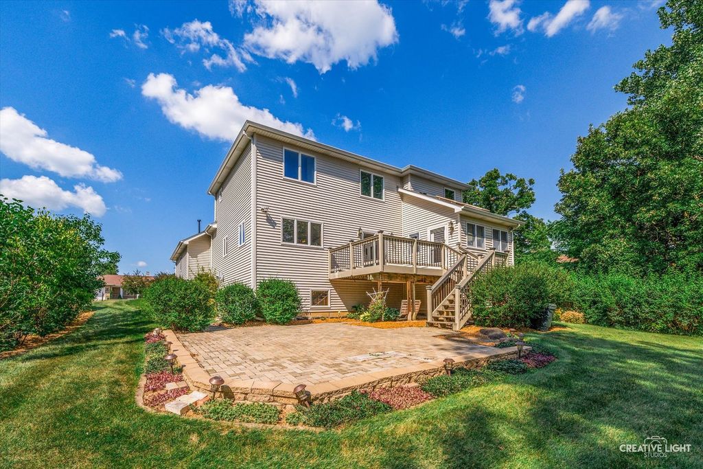 BRAND NEW FURNACE and A/C! Plus roof, siding, and gutters all replaced in 2024! This 3-bedroom, 3.5-bath home offers over 2,800 sq ft of finished living space and a very functional floor plan, all poised on nearly a half-acre lot with unique open space. The main level includes a mudroom with laundry, a kitchen with breakfast bar and table space, and a dining room that opens easily into the living room-perfect for everyday living or gathering with friends. A see-thru fireplace adds warmth and connects the living room to the sunroom, where natural light pours in and creates a cozy spot to relax. A convenient half bath completes the main floor. Upstairs, you'll find 3 total bedrooms-2 served by a full hall bath, plus a spacious primary suite with its own private ensuite bath, offering a relaxing retreat at the end of the day. The finished basement adds even more flexibility with a large rec area and another full bath-ideal for entertaining. Step outside and discover a paver patio, deck, and a tiered garden with a pond, bridge, and winding paths-an unexpected, private retreat you'd never guess was there. And the location is fantastic-just minutes from all of Yorkville's conveniences.