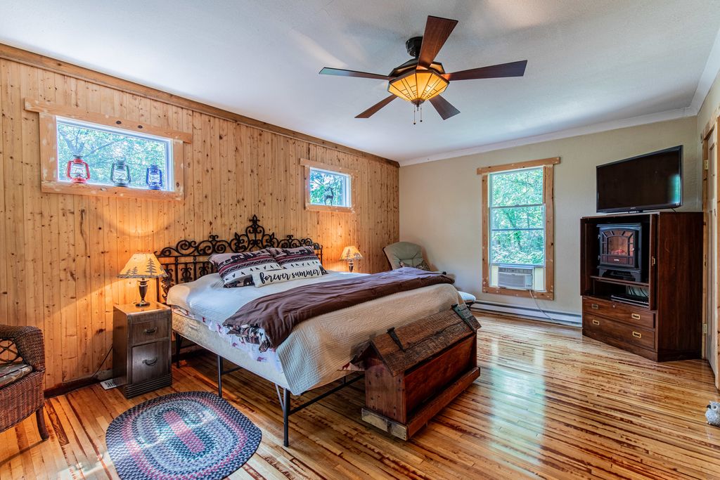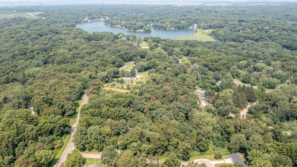 Looking for a cabin that's nestled in the woods and located close to a lake? Here is your chance to own a lovely 3 bedroom, 1.5 bath home on a cul-de-sac in the Lake Thunderbird community. The main floor is great for gatherings with the cozy wood-paneled living room that flows into the dining room and kitchen with island and stainless steel appliances. There's even a main floor half-bath. Upstairs offers a spacious primary bedroom, a large secondary bedroom, a full bathroom, and laundry. Electric baseboard heat. The walkout basement is partially finished with another bedroom and is plumbed for an additional bathroom. The amazing wrap-around deck draws you outside to enjoy the birds and trees surrounding the home. This home is perfect for a weekend getaway all year round or full-time living. Only 2 hours from Chicago, this private lake community offers a beach, a clubhouse, a pool, lake access, tennis courts, basketball courts, volleyball courts, and is close to golf courses.