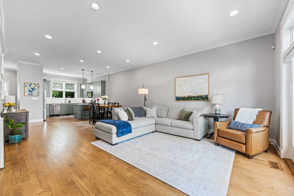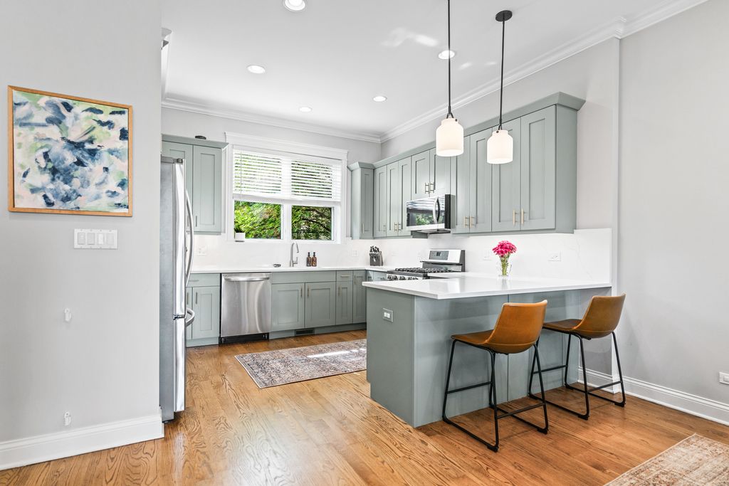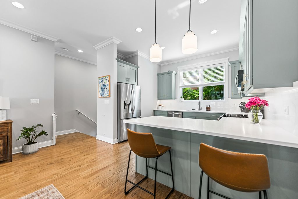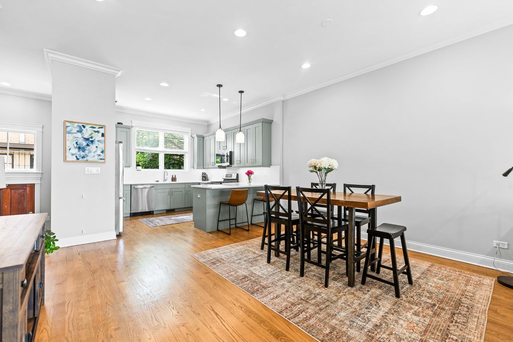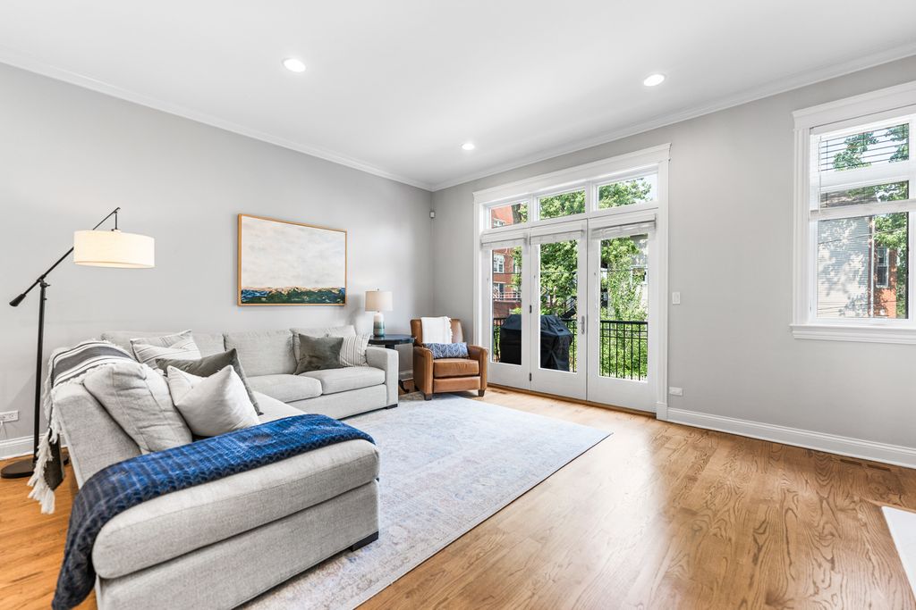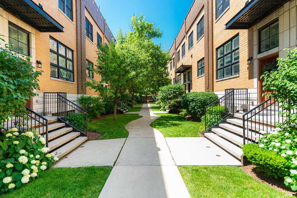 Experience this outstanding 4-bedroom, 3-bathroom townhome nestled in the heart of the dynamic Logan Square community. Set within a secure gated courtyard, this home offers the practicality of a 2-car attached garage while providing the spaciousness of a single-family residence. The airy atmosphere is enhanced by 10-foot ceilings and elegant hardwood floors throughout. The seamless flow of the living and dining areas extends to a private balcony, ideal for relaxation or grilling. The chef's kitchen has been tastefully updated. The second floor has three bedrooms and two full baths, including a luxurious primary suite with a generous walk-in closet and an en-suite bathroom featuring a dual vanity, shower, and separate soaking tub. On the top floor, you'll find a versatile space complete with a wet bar, perfect for an office or exercise area, and it leads to a private roof deck offering impressive skyline views. The lower level accommodates a fourth bedroom and a third full bath, great for guests or a home office. The location provides easy access to the 606 trail, major expressways, public transportation, parks, as well as a wide selection of restaurants and shops. Experience the pinnacle of modern urban living in this exceptional home!