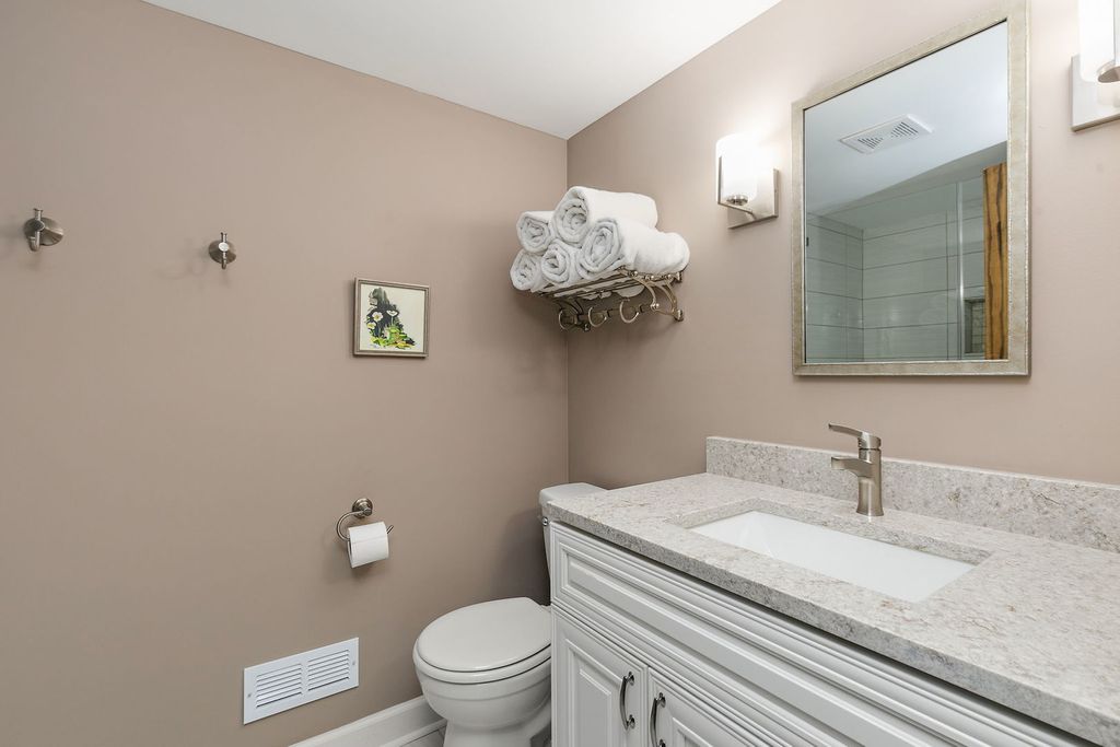 MAIN LAKE VIEWS. This Beautifully renovated 3 bedroom, 2.1 bath, 1-car garage home has a prime location. The main level offers a primary bedroom suite that has its own full bath and walk in closet. The large living room feature a wood burning fireplace and sliding doors to an outside balcony. The living room, dining room and second bedroom/library all have walnut hardwood floors. First Floor Laundry. An eat-in kitchen, with KitchenAid Appliances '23) and half bath complete the main level. The walkout lower level features a large deck, a large family room, wet bar with a second wood burning fireplace, adjoining bedroom, fully renovated bath, two cedar closets, laundry room hook up, Tankless Water Heater ('23) Water Softener ('25) and large storage area.