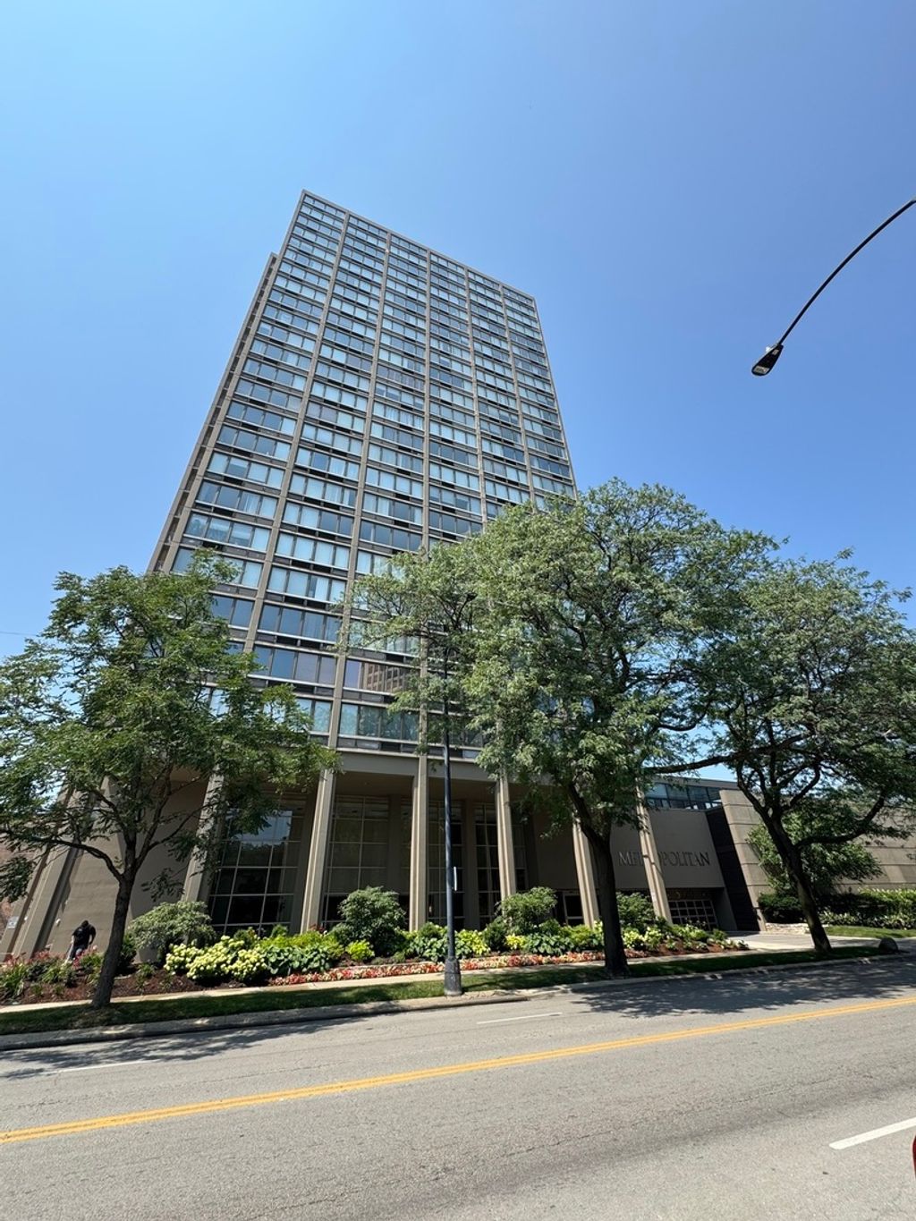 Welcome to the Metropolitan Building! This is more than just a condo - it's a lifestyle. Schedule your showing today and see why the Metropolitan is one of the most desirable addresses in the area. One of the most desired & popular buildings off Sheridan Road. Walk to trails & the Beach! Reasonable & more inclusive HOA dues than other buildings in area. Kitchen features updated quartz counters, ceiling fan, stainless steel appliances with LARGE fridge (2022), Microwave, Dishwasher (2023) Several closets and storage nooks. Overhang Breakfast Area w/2 chairs remain. Wonderful Picturesque views of the city. Seller has also updated several appliances, removed the "popcorn Ceiling" and made additional updates including multiple ceiling fans and hardwood engineered flooring over the years. Unit is near elevator with waste chute and elevator banks. Per HOA: Several parking spaces for Rent and for sale in the building approx. $20K, see postings in lobby and or Mail areas or parking garage for 3rd party information to contact. HOA Dues & amenities include: Water, Common Insurance, Security, Doorman, TV/Cable, Business center with conference room, Exercise Facilities, Pool, Picnic Barbecue Grill area, Dog walking area, Newer Elevators, Exterior Maintenance, Lawn Care, Scavenger, Snow Removal, 24-hour doorperson/security, Food Delivery Pick up Area in lobby, basic cable and premium channels, an Amazon package hub, a 24-hour laundry room with vending machines and plenty of counter space and laundry units! a state-of-the-art fitness center, an indoor heated pool, tennis courts, and outdoor spaces. CTA Red Line, Bus stop at corner! Conveniently located near shopping, dining, and transportation. No rental restrictions! Pet and Investor friendly building. Notes: 2 Breakfast chairs, bed frame remains unless buyer would like removed. TV Frame Bracket to remain and unit conveyed in as is condition.