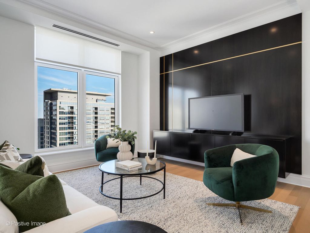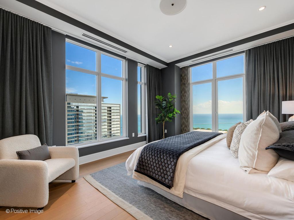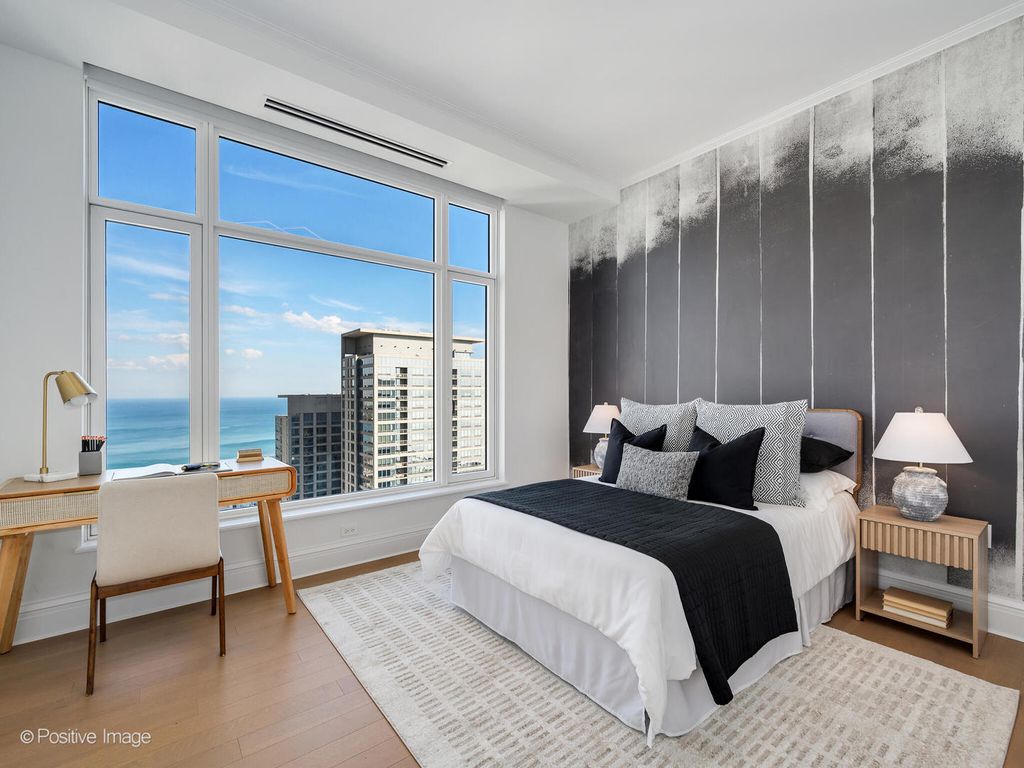 Experience unmatched sophistication in this 3-bedroom, 2.1-bath residence soaring 43 stories above Chicago in Robert A. M. Stern's architectural masterpiece, One Bennett Park. Framed by sweeping views of Lake Michigan and the city skyline, this home is set within an amenity-rich community, complete with a 1.7-acre private park by renowned landscape architect Michael Van Valkenburgh. Step inside to a gracious foyer and an expansive open layout filled with natural light from oversized north- and east-facing windows. Ten-foot ceilings, white oak hardwood floors, custom millwork, and designer lighting create an atmosphere of timeless elegance. The formal living and dining rooms offer a spectacular backdrop for entertaining, with stunning lake and skyline vistas. The chef's kitchen features custom Plain & Fancy cabinetry, Perla Venato stone countertops and backsplash, premium Wolf and Sub-Zero appliances, and Kallista fixtures. The corner primary suite offers dazzling views, a walk-in closet, and a spa-inspired marble bath with a soaking tub and a walk-in shower. Additional features include motorized shades, whole-home audio, automated lighting, and zoned climate control. Residents enjoy world-class amenities, including a limestone and granite motor court, 24-hour door staff, concierge and valet services, a bar and billiards lounge, a Jay Wright-designed fitness center, indoor and outdoor saltwater pools, a full-service spa and salon, a Pilates studio, and more. Just steps from the lakefront, Riverwalk, Navy Pier, Magnificent Mile, and premier dining, shopping, and cultural destinations. This is more than a home-it's an unparalleled lifestyle.