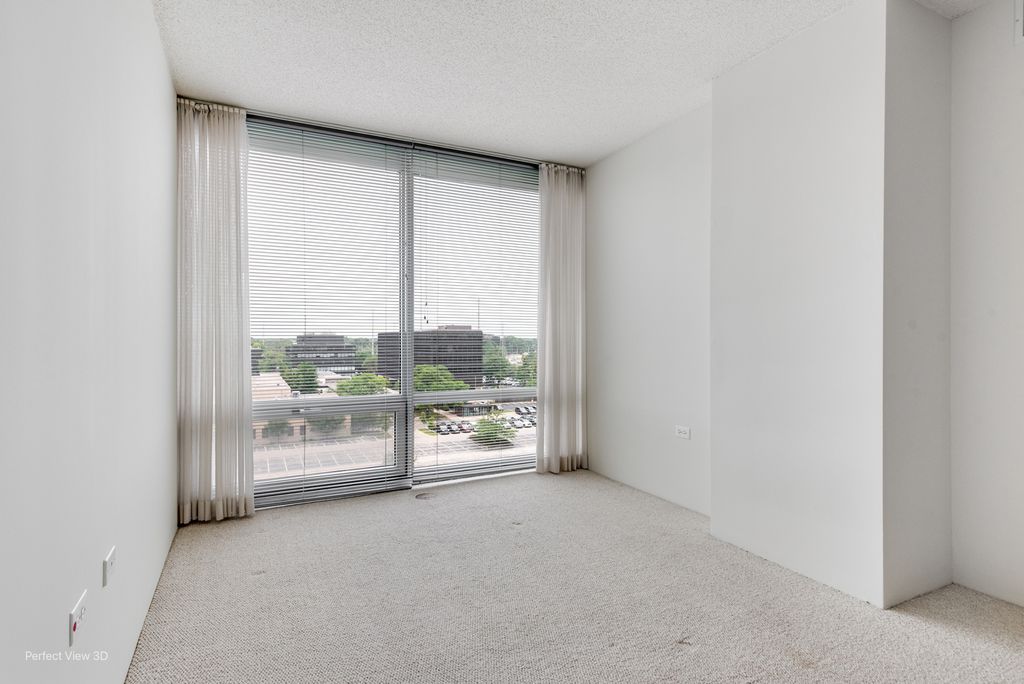 Beautiful and spacious corner unit with great open floor with treetop views of Harms Woods. This sought after 3bedroom, 2 bathroom with lots of closet space and floor to ceiling windows offering panoramic views and balcony for outdoor enjoyment off the kitchen. Hardwood floors in the living and dining rooms, berber carpeting in the bedrooms. The master bedroom has double closets with ensuite walk in shower and double vanity. Spacious storage closet by the entrance. Laundry closet has some extra storage shelf space. Bedroom 2 has a nice size walk in closet. 2 car deeded garage space included. Building amenities include: year round glass enclosed indoor pool, hot tubs, fitness center, tennis court, BBQ area and party, EV charging stations. Convenient transportation to the expressway, Old Orchard Mall, Lifetime Fitness and restaurants.