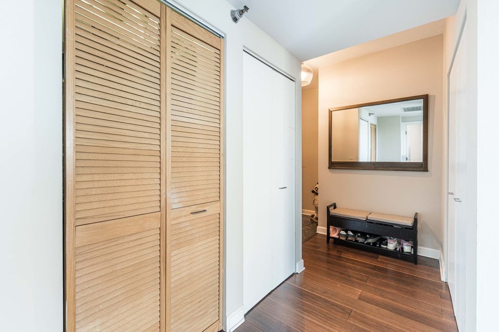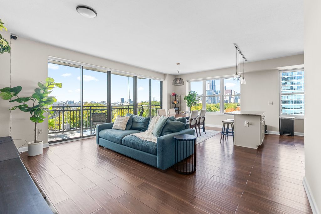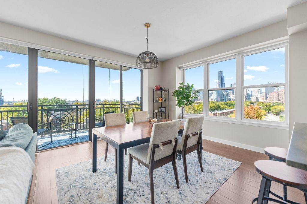 Fantastic CORNER unit in the South Loop with one of Chicago's best skyline VIEWS from every window! This spacious 2 bedroom, 2 bathroom home features an open kitchen with island, in-unit laundry, updated ensuite with double vanity and walk-in closet, plus a NW-facing X-large balcony ideal for sunsets and entertaining. New automatic blinds. Full-amenity building offers a fitness center, bike room, storage and 24-hour door staff. Perfectly located with easy access to CTA, expressways, the 18th Street bridge to the lakefront, and just blocks from Mariano's, Trader Joe's, Jewel, Target, and the Roosevelt Collection. Assessment includes TV/cable and parking. Heated garage parking spot 25K.