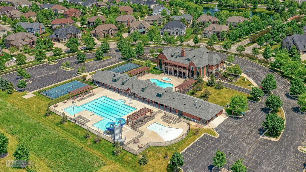 Experience Unrivaled Luxury in Ashwood Park. Discover exceptional living in this custom-built Naperville estate, East Facing & perfectly situated within the sought-after Ashwood Park community. Spanning an impressive 6,094 sq ft above grade, this home offers a sophisticated blend of timeless design and modern amenities, crafted for discerning tastes. From the striking curb appeal and professional landscaping to the soaring ceilings and intricate custom millwork inside, every detail exudes quality. Sunlight floods the open-concept layout through expansive windows, highlighting the elegant crown molding and creating an inviting atmosphere for both grand entertaining and comfortable daily life. The heart of this home is the gourmet kitchen, a chef's dream equipped with premium stainless-steel appliances, double ovens, a professional-grade gas range, granite countertops, and an oversized island. A walk-in pantry and custom beverage center/butler's pantry add ultimate convenience. Flowing seamlessly is the dramatic two-story family room, anchored by a custom fireplace and flanked by built-in bookshelves and floor-to-ceiling windows. Enjoy serene moments in the spacious sunroom with skylights or utilize the versatile main-floor office or bedroom, complete with a full ensuite bath. Upstairs, accessed via two separate staircases, discover four generously sized bedrooms, each boasting a private En Suite bathroom, voluminous tray ceilings, and walk-in closets. The primary suite is a true retreat, featuring a tranquil sitting room with coffee bar, large dressing area, dual HUGE walk-in closets, and a newly updated, spa-inspired bathroom designed for ultimate relaxation. Huge Great Room / Media room on the 3rd level for entertainment. Step outside to your private backyard oasis featuring a two-tiered paver patio, perfect for alfresco dining and evening relaxation. Recent updates include many energy-efficient Andersen windows (2021) New Water Heater 2022, New dishwasher 2025, New washer and Dryer 2023. and fresh interior paint, and refinished gleaming hardwood floors, making this home truly move-in ready. Enjoy the convenience of a spacious home and enrollment in acclaimed District 204 schools, with Peterson Elementary just a stroll away. Ashwood Park residents' benefit from exclusive access to resort-style amenities including a clubhouse, pools, waterslide, sports courts, playground, and fitness center. This isn't just a house; it's the key to an exceptional Naperville lifestyle. Schedule your tour today.