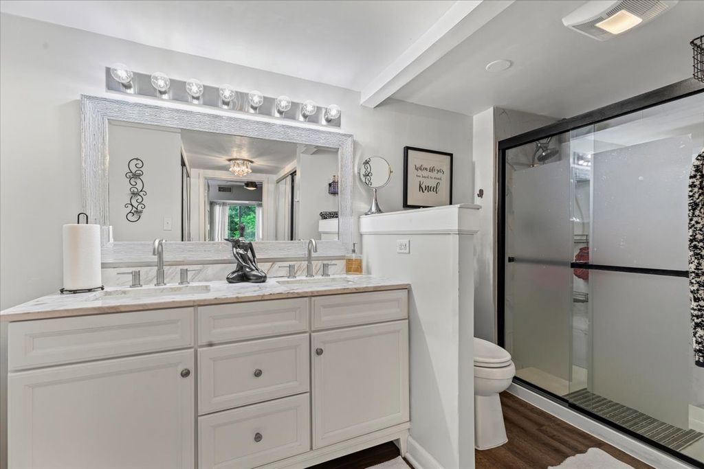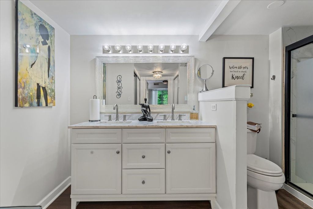 Unfortunate circumstances caused the previous buyer to cancel her contract, so this beautiful unit is back on the market. Seller is ready to close!! Get ready to be wowed by this stunning 2-bedroom, 2-bath luxury condo with underground parking in the highly desired Waters Edge of Hazel Crest, a 55+ Adult Community. The Sellers have completely transformed the unit with top-to-bottom renovations. Rich walnut-colored luxury vinyl flooring flows seamlessly throughout. Cozy up in the living room by the electric insert fireplace or step out onto the private balcony, conveniently accessible from the formal dining room. The bright and airy kitchen features white cabinets and stainless-steel appliances. The primary bedroom suite boasts double closets, double vanities, and a walk-in shower in the elegant bathroom. The in-unit laundry area includes a spacious, side-by-side washer and dryer. All furnishings are negotiable! The HOA covers heat, water, parking, exercise facilities, a pool, sauna, exterior maintenance, and snow removal. Enjoy peaceful and picturesque surroundings!