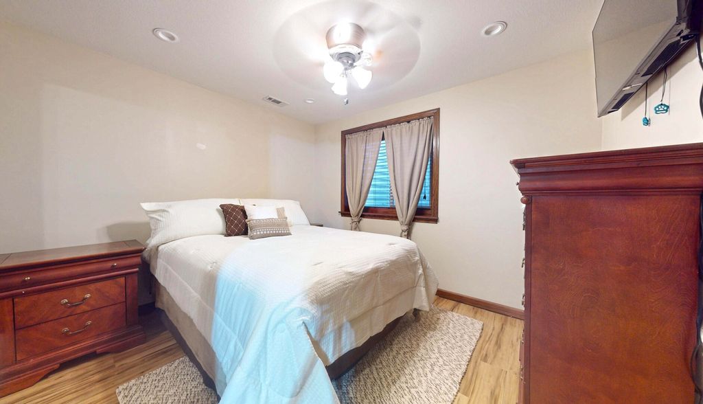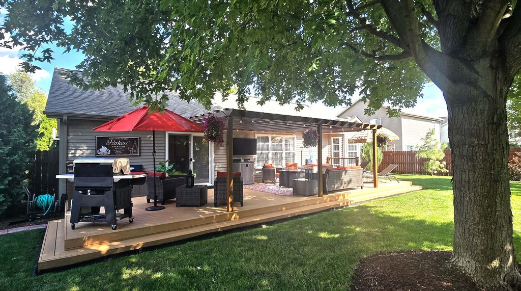 Looking for a Like New Home in an established neighborhood with amazing landscaping and mature trees? You FOUND IT! WOW the updates throughout are over $100,000!. The main floor features living room with a 2 sided gas log fireplace, with the other side giving ambiance to the eat in kitchen complete with granite counter tops, tiled back splash, breakfast bar, ample cabinets, newer appliances, table space, and patio access. WAIT until you see the immaculate back yard! The deck spans the rear of the home, overlooking the fenced back yard, semi secluded too. There is space behind the back trees with garden sheds. The owner's wing has a walk in closet and stunning bathroom with granite counters and double shower with glass doors. There are 2 additional bedrooms and office on opposite side of the home. Laundry room leads to the 2 car garage with epoxy flooring. The basement is fully finished with a large family room, craft/office room, bedroom, full bath and storage, plus a water back up sump. Basement exterior walls, ceiling and furnace room insulated with soundproof/fireproof type insulation. Additional UPGRADES: Roof 2021, Gutter Guards, Underground downspouts, ALL interior paint, Wood flooring, bathrooms, basement flooring, fixtures, pergola & deck, humidifier added to furnace and more...