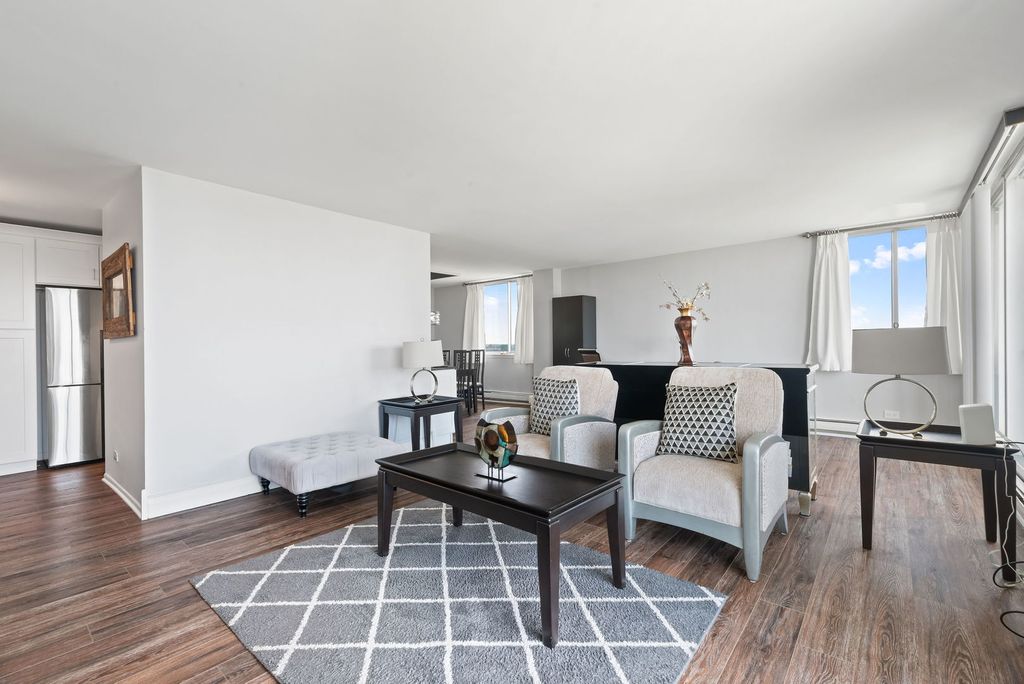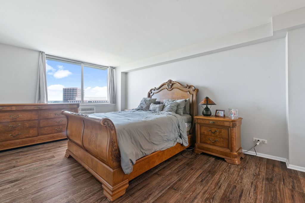 Beautiful penthouse, 2 bedroom east and north facing corner unit in Oak Brook! Sunlit unit with amazing views of the city skyline, and open spaces from the windows and the large private balcony with two large floor-to-ceiling sliding doors. Open floor plan. Expansive living room with separate dining room. Neutral paint and updated lighting and LVT wood flooring and trim. Updated kitchen with stainless steel appliances, wine refrigerator, dishwasher, refrigerator and cooktop/oven, large pantry closet, quartz countertops. Foyer with double coat closet. The primary bedroom has an ensuite bathroom and 2 large closets. The second bedroom is spacious and serviced by the hallway full bathroom with a bathtub and shower. Separate linen closet. Newer A/Cs . Management on site and large lobby with secure entry. Amenities include outdoor pool, party room, exercise facilities, bike storage, coin laundry. Outdoor unassigned permit parking spaces provided. Indoor underground parking spot is currently rented ($70 per month) by owner and can be assigned to the new buyer. There is a storage locker included. Conveniently location with easy access to major roads and highways, shopping (Oak Brook shopping center and Yorktown mall), restaurants, Lifetime fitness, AMC and more. ***The Seller has paid off the special assessment in full***