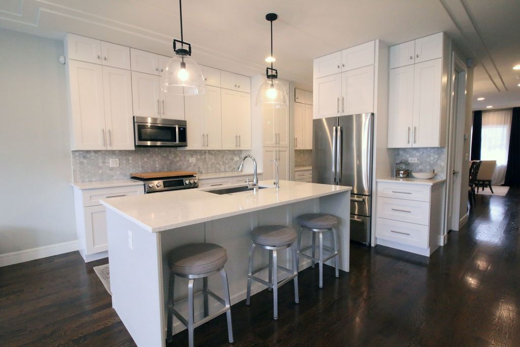 Welcome to 4548 N. Kildare, an extraordinary newer construction home built in 2017 that perfectly blends suburban-like tranquility with city convenience in the heart of the desirable Mayfair neighborhood. Nestled on a serene, tree-lined street and set on an extra-deep lot with stunning curb appeal, this 4-bedroom, 3.5-bath residence offers architectural elegance, thoughtful design and luxury finishes throughout. From the charming cedar board front porch to the inviting foyer with gleaming hardwood floors, detailed ceiling and lighting, every space is crafted for both style and comfort. The formal living and dining areas boast a cozy fireplace and flow seamlessly into a chef's dream kitchen featuring high-end Bosch appliances, ceiling-height cabinetry, built-in pantry with pull out shelving, and a sleek butler's pantry with beverage fridge. The adjacent family room overlooks a professionally landscaped backyard oasis complete with a spacious patio perfect for entertaining. Upstairs, the luxurious primary suite includes a spa-inspired ensuite bath with heated floors, a walk-in shower, and two custom walk-in closets. Two additional generously sized bedrooms feature custom wall moldings and Elfa closet systems. A full laundry room with cabinetry, folding counter, and utility sink, plus a double vanity hall bath, round out the second floor. The fully finished lower level offers a massive recreation room, wet bar with beverage fridge, a versatile fourth bedroom with a built-in Murphy bed, and a full bath - ideal for hosting guests or creating a home office or gym. Additional features include 9-foot ceilings on all three levels, Hunter Douglas window treatments, unbeatable access to the Montrose Blue Line, I-90/94, and neighborhood favorites like Mayfair Park, the North Branch Trail, and acclaimed dining such as Old Irving Brewery. This home is a rare opportunity to enjoy sophisticated city living while embracing the warmth and charm of a close-knit neighborhood.
