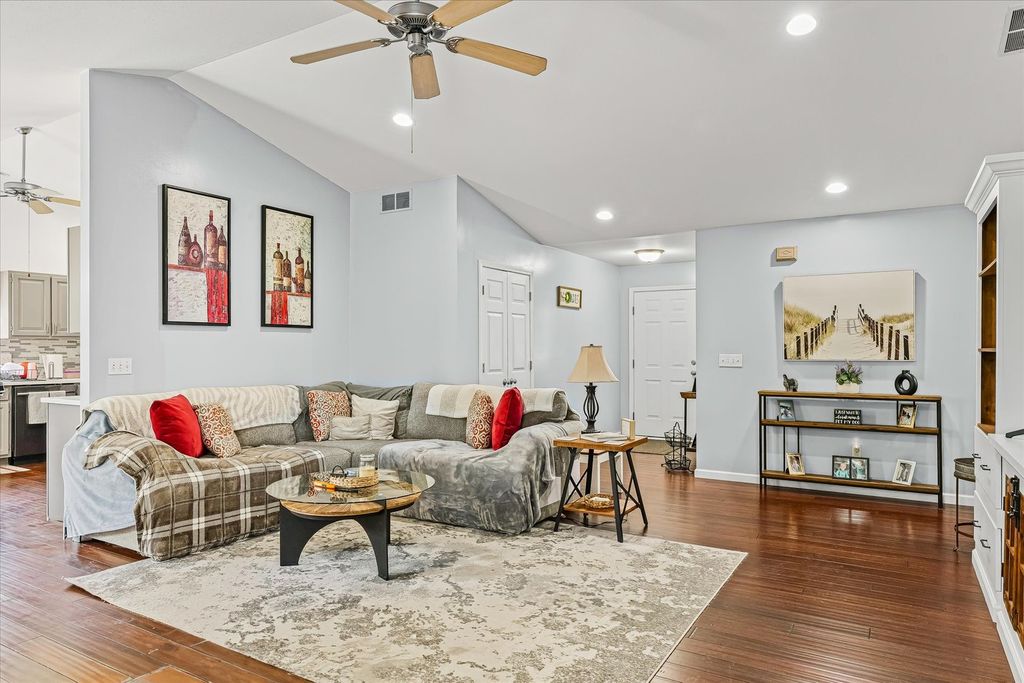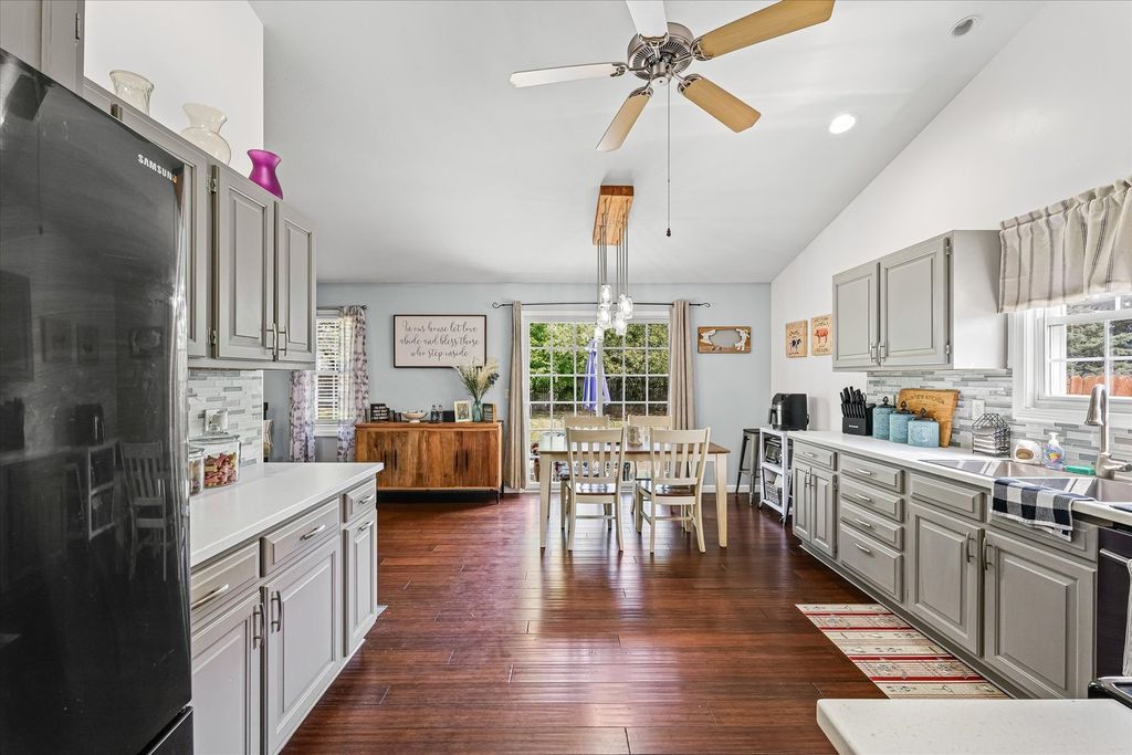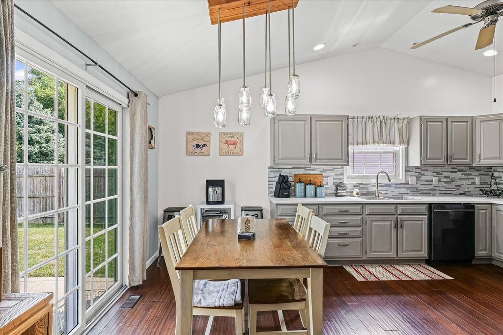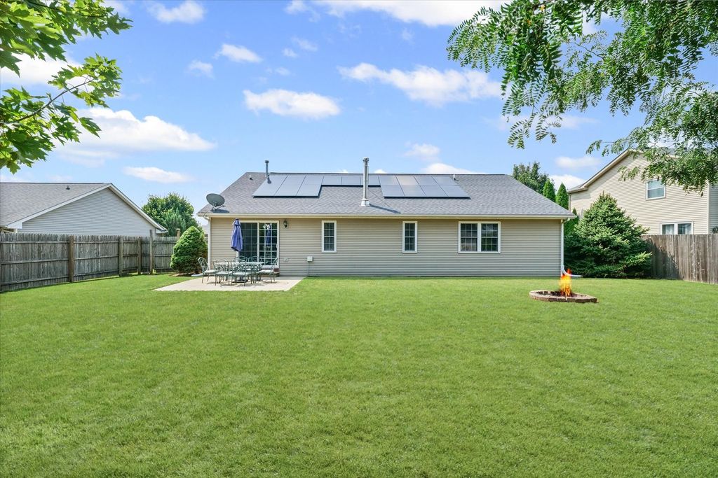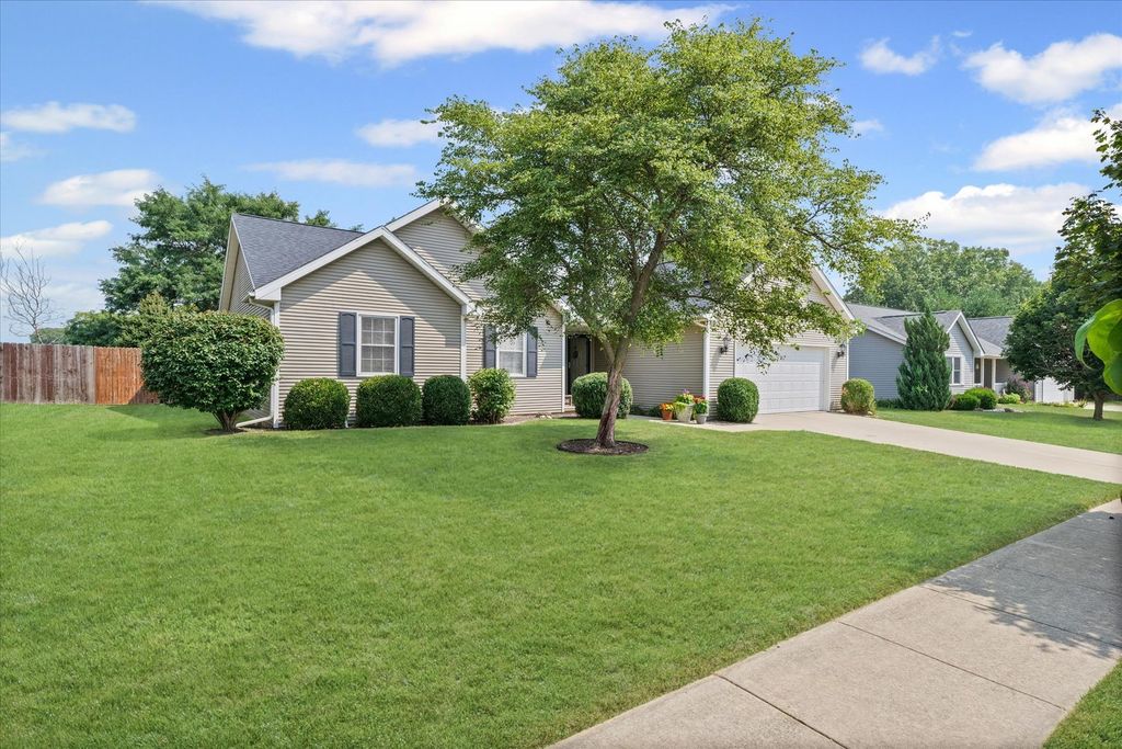 Nestled in an established Mahomet neighborhood, this charming 3-bedroom, 2-bath home offers both comfort and style. Enter inside to find a spacious living area with soaring cathedral ceilings and beautiful hardwood floors that flow throughout the home. The updated kitchen is a showstopper, featuring stainless steel appliances, refreshed cabinetry, solid surface countertops, and a roomy pantry. The primary suite boasts a generously sized walk-in closet, while a sliding glass door leads to a fenced backyard with a patio-perfect for gatherings. A large garden shed is included, and major mechanicals including the furnace, air conditioner, and water heater were updated in 2019, with a new roof adding peace of mind. Recent touches include a new garage door and fresh paint. This one is move-in ready and won't be on the market for long!