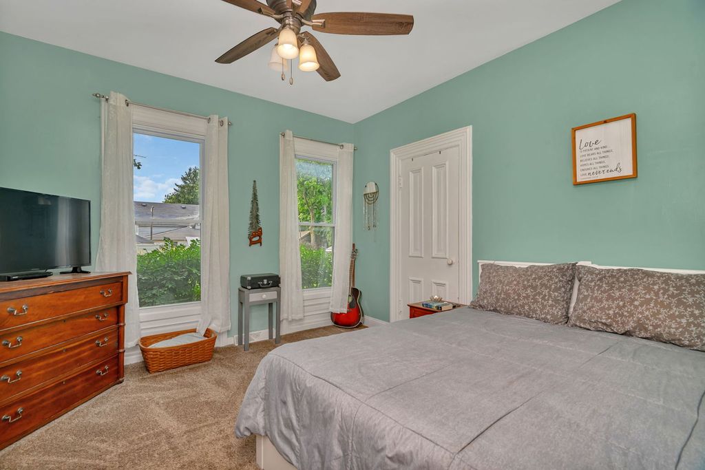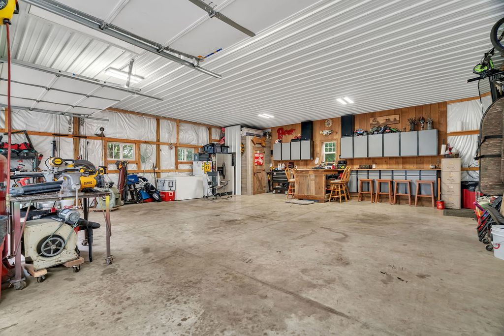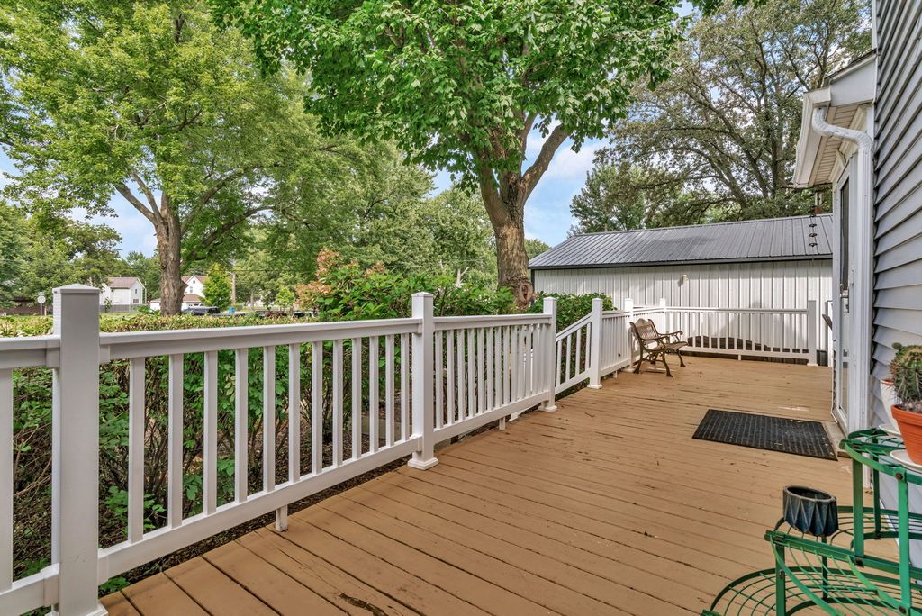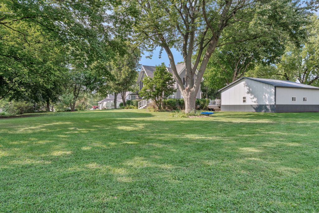 Welcome home!! Check out this charming 4 bedroom home located on a spacious corner lot, spanning four lots for plenty of outdoor space, large mature trees and privacy. Step inside, you will find on the main level, 1.5 newly remodeled bathrooms and a kitchen that features stainless steel appliances, granite countertops, and a deep hammered copper sink. All appliances in kitchen will stay. Enjoy two sunrooms, one off the dining room, and the other off the main floor bedroom. Perfect for relaxing, plant lovers, reading a book or working from home. The second sunroom doubles as a laundry room and office space. Upstairs, you will find 3 spacious bedrooms and a loft area perfect for a workout space, playroom, or a cozy hangout. Step outside to a beautifully landscaped yard and a two level deck patio, great for cookouts and entertaining. If the house wasn't enough, check out this newly built 30x35 dream garage!! Double insulated, radiant heated floors, pull-down attic storage, 8x10 WI-FI enabled overhead doors, and space for 3-4 vehicles. Cabinets in garage are also included. This home blends small town convenience with big time amenities. A MUST SEE!!