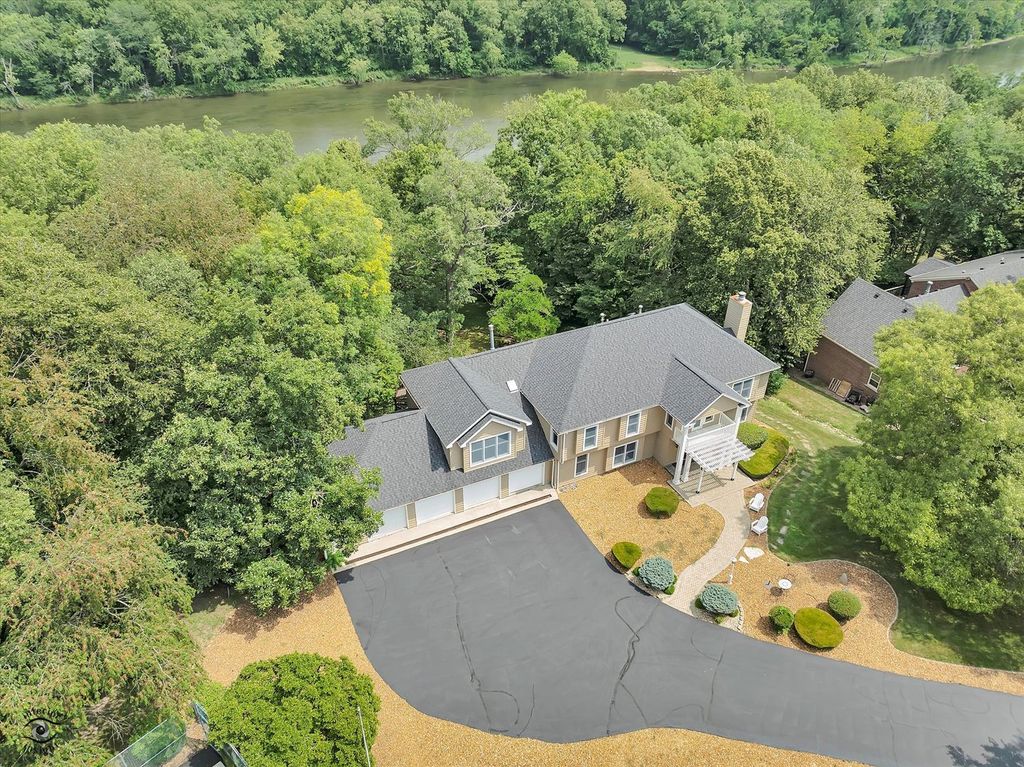 This completely remodeled, one-of-a-kind home in the prestigious River Bluff neighborhood offers over 5,000 square feet of luxurious living space and sits on a serene cul-de-sac along the Kankakee River. With endless river views, this exceptional property features two expansive exterior decks, a walk-out basement, and a private gazebo with a custom-built deck right on the water-perfect for relaxing or entertaining in total privacy. Inside, the home is filled with natural light and stunning finishes. The remodeled kitchen is a chef's dream, showcasing custom Brazilian cherry cabinets, high-end appliances, an oversized island, and plenty of cabinetry and counter space. Beautiful hardwood floors flow throughout the main level, enhancing the elegance and warmth of the space. The master suite is a true retreat, complete with a cozy sitting room and fireplace, a luxurious en suite bathroom featuring a Jacuzzi tub, dual vanities, and a dual walk-in shower. The fully finished basement is an entertainer's paradise, offering a 7.5 x 15-foot Endless Pool with an underwater treadmill, a full bathroom, a wet bar, and a spacious recreational area. Significant updates over the last three years include a new roof, remodeled kitchen, flooring, a freshly painted exterior, new main deck, new AC units and furnaces, as well as a water softener and reverse osmosis system, river front deck. This riverfront gem combines modern comfort with peaceful natural surroundings in a way that few properties can. Call today for your private showing!