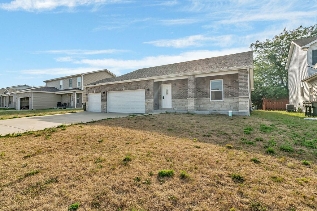 Welcome to 886 Western Ave., Braidwood, IL - 3-bedroom, 3-bath ranch home that perfectly blends modern comfort with thoughtful upgrades. Featuring a spacious 3-car insulated garage and a full basement with a newly added bathroom, this home is designed for both convenience and style. The brick-and-stone front with a covered porch that creates beautiful curb appeal, while inside, you'll find an open entryway leading right to the beautiful kitchen with a large island, stainless steel appliances, ample lighting, and a pantry for extra storage. The master suite offers a spa-like retreat with an oversized whirlpool tub, separate shower, and generous space. Every detail has been considered - from ceiling fans and mounted TVs throughout, to a tankless water heater, utility sinks, and extensive garage enhancements including extra outlets, hot/cold water, and a new gas heater. Outdoors, enjoy the front yard, extended concrete areas, and a driveway that accommodates three full cars. With a basement already insulated and ready for your finishing touch, plus quick access to major highways and I-55, this home offers both luxury and practicality in an ideal location.