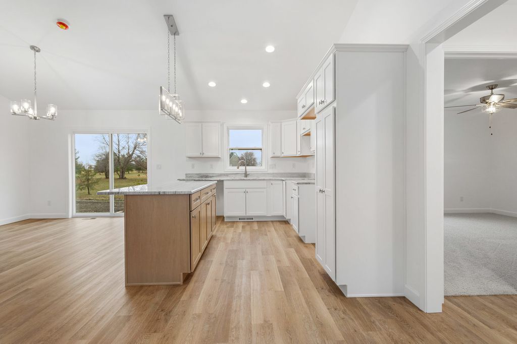Come home for the holidays in this 1-story NEW CONSTRUCTION underway! Dirt is moving on this very popular "KASE" floorplan offering 3 bedrooms, 2 bathrooms, cathedral ceiling between the eat-in kitchen w/island and living room, laundry room and patio slider leading out to a 12 x 12 concrete patio. Beautiful QUARTZ kitchen countertops and LVP flooring throughout main living areas. The primary suite will not disappoint with dual vanity, walk-in shower an WIC. The snappy WHITE EXTERIOR with GRAY HIP ROOF encompasses approximately 1550SF of living space with 2x6 construction, a 2-car attached garage and seeded yard. Enjoy small town living at its finest with eateries, small businesses, bank, USPS, gas station, community park and Fisher Schools.