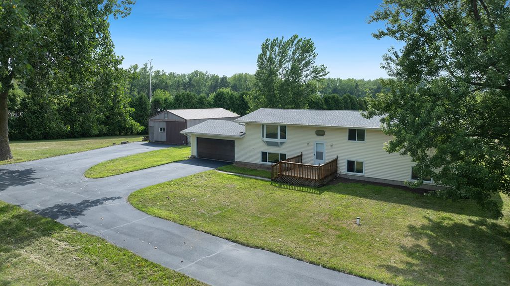 Discover this beautifully updated 4-bedroom, 3 Full baths, Sprawling 5.34 ACRES, 24X40 pole barn with electricity, in Beautiful UNINCORPORATED Marengo, ZONED AG!! This Home offers modern finishes and a versatile layout. Featuring New Flooring throughout, Freshly Painted top to bottom, New Light Fixtures, and Elegant Six-Panel Doors. The main level has a spacious living room, dining room with a walkout to large wooden deck, Brand New Kitchen w/ New Cabinets, Stainless Steel Appliances! 3 Bedrooms and a full bath! The fully finished lower-level includes a SECOND BRAND NEW KITCHEN with stainless steel appliances, master bedroom with its own private bath, laundry area, large family room and the 3rd full bathroom. Additional upgrades in the home New Furnace, AC, Water Heater, and More. Enjoy the 5.34 acres outdoor living, a spacious attached 2.5-car garage, and a spacious out building perfect for TRUCK or a mechanic with 24 foot high opening or even turn it to your animal barn. Tucked away on private land yet just minutes from I-90! This property offers lots of private space to do whatever you like! Horses, ATV, Gardening, all your favorite hobbies and more!