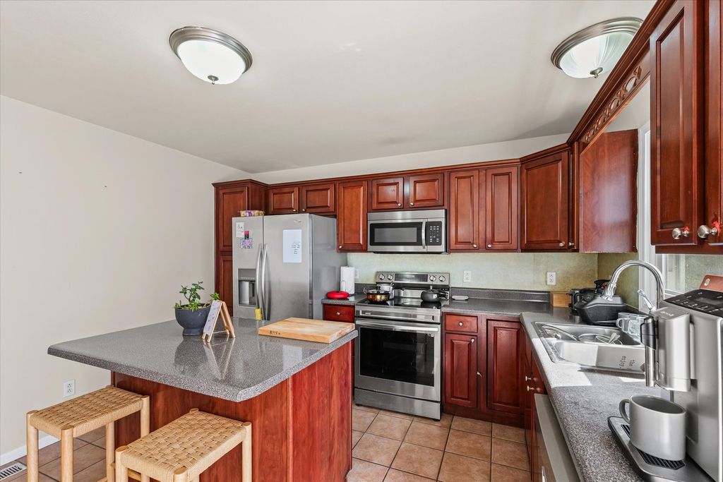 Beautifully updated home featuring a spacious first-floor master suite with a huge walk-in closet for exceptional storage and organization. Enjoy music throughout with built-in interior speakers and wiring for outdoor speakers-perfect for entertaining. The kitchen, master bath, and laundry are enhanced with upgraded tile flooring and rich cherry cabinetry, creating a warm, elegant feel. Recent updates include: Den converted to a large master closet 2023 All windows replaced in 2023 All new appliances 2023 New HVAC unit installed March 2023 Upstairs carpet replaced June 2023 Ground floor carpet replaced with wood flooring June 2023 Back patio added in 2022 Additional features include an Aprilaire furnace for year-round comfort and a finished basement family room offering versatile space for relaxation or gatherings. Prime location with easy access to Carle, shopping, dining, and major highways. This home blends style, comfort, and functionality in a highly desirable layout.