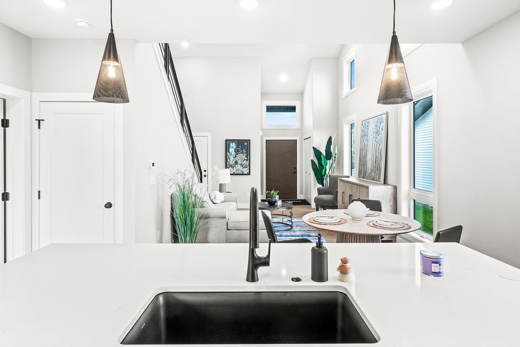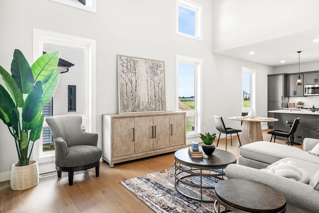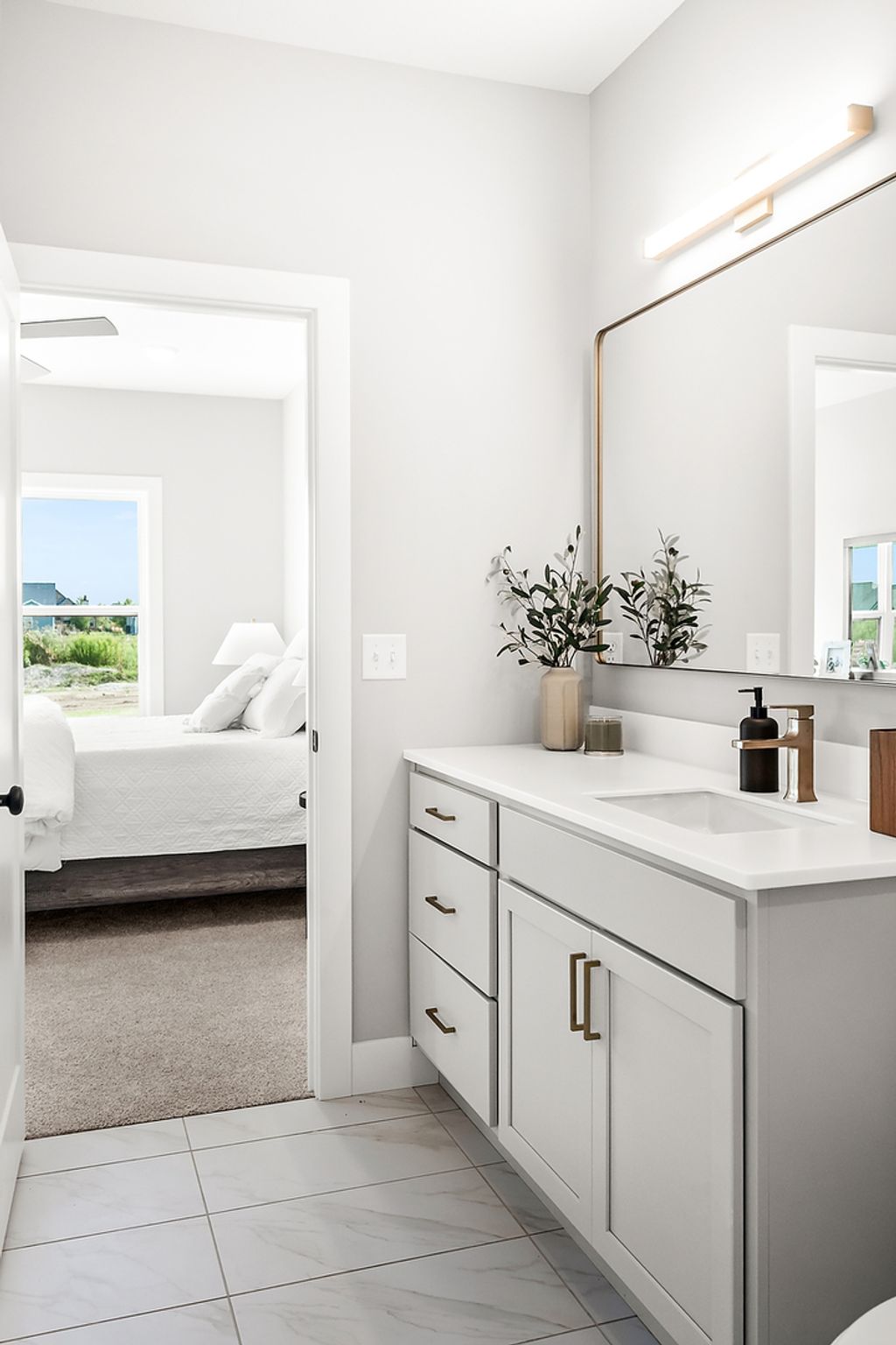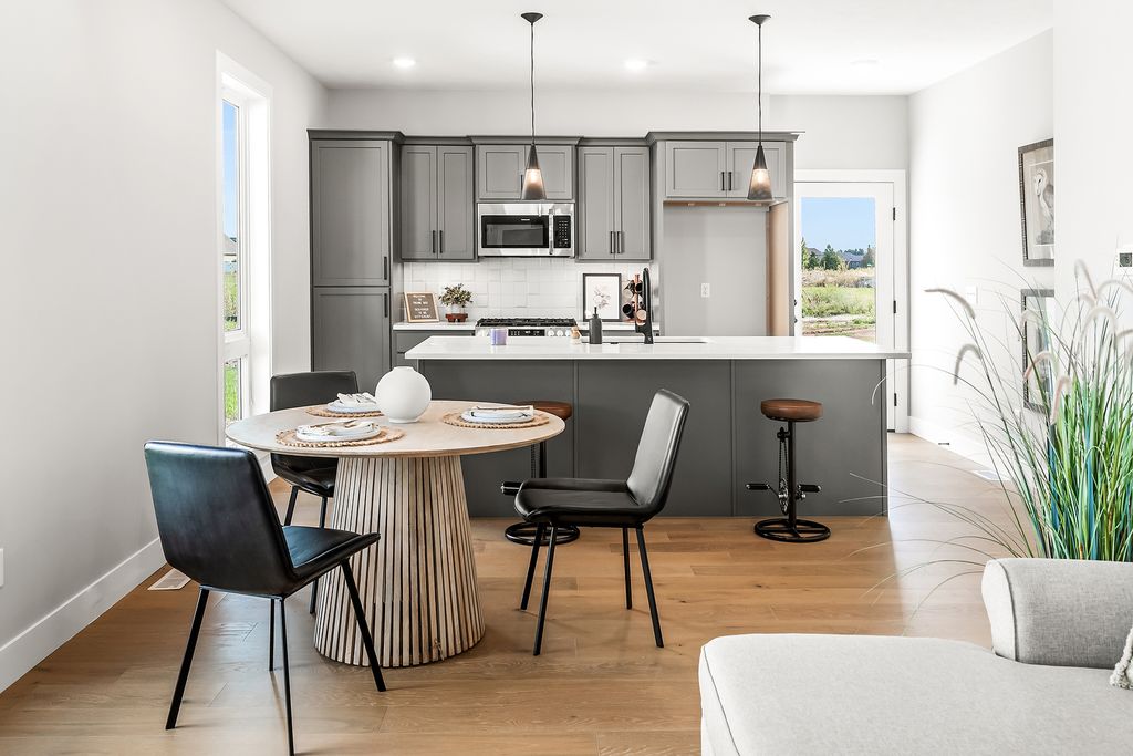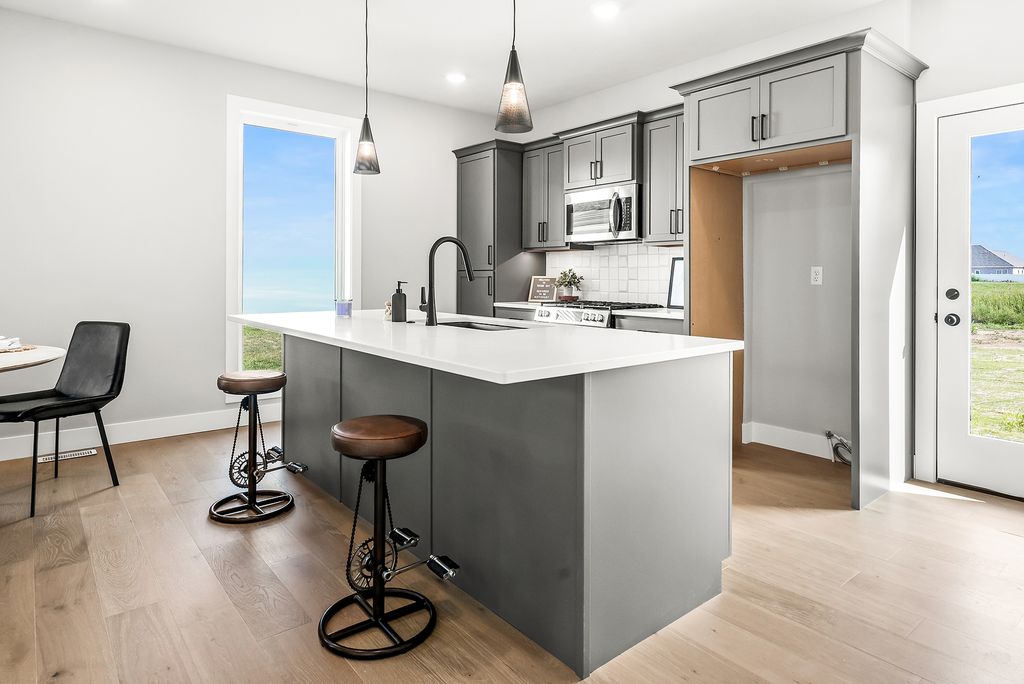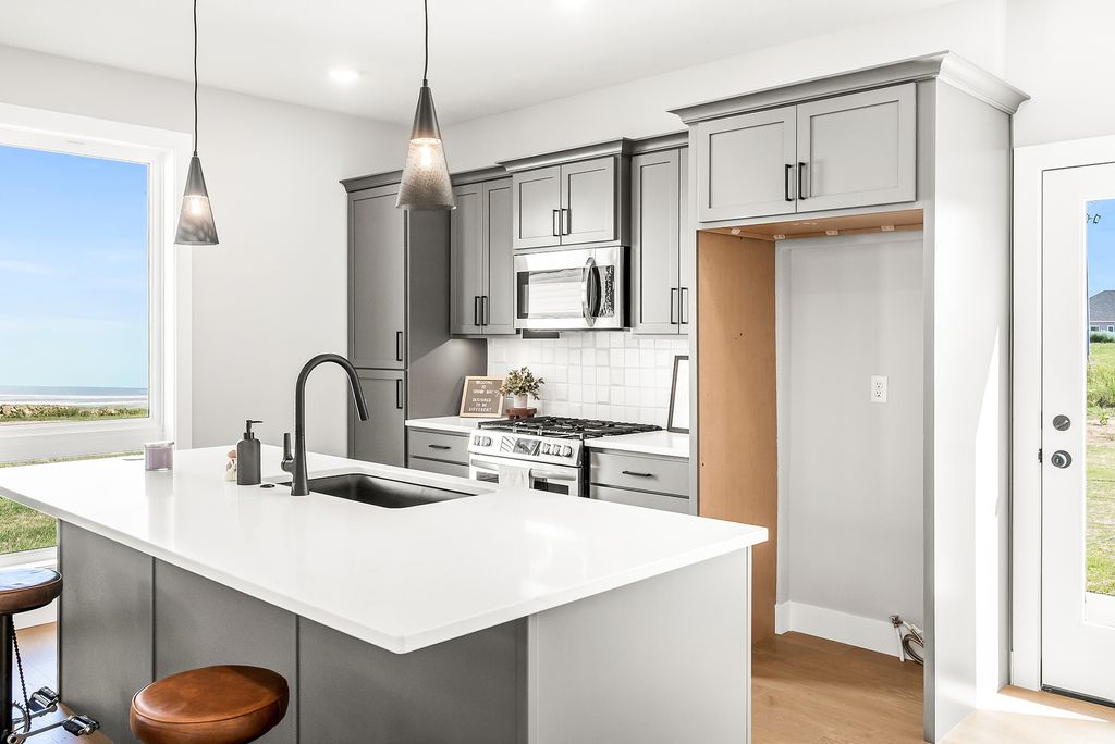 Welcome to TRUNK BAY!!!! This is a NEW DESIGN focusing on high end details. This highly efficient and frugally design 1.5 story home offers a very functional layout and contemporary finishes throughout. Featuring an open-concept floor plan with soaring ceilings, black custom metal railings, and large windows that flood the space with natural light, creating a warm and inviting atmosphere. The kitchen boasts matte gray cabinetry, a geometric subway tile backsplash, quartz countertops, and a large center island. The primary suite is conveniently located on the main level and includes a private en-suite bath featuring a tiled shower, dual vanity, and modern gold fixtures. A half bath and laundry space that adds convenience to the main level. Upstairs, a spacious loft overlooks the main living area below and provides the perfect spot for a secondary living space, home office, or versatile flex area. Two additional bedrooms and a full bathroom complete the upper level, offering a comfortable and private retreat. Connect Marty Trunk to schedule a private tour today!